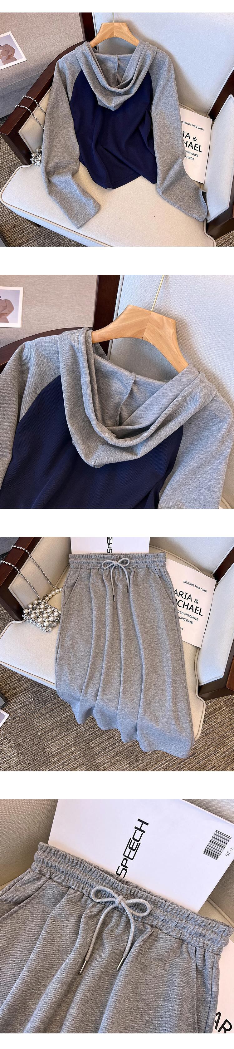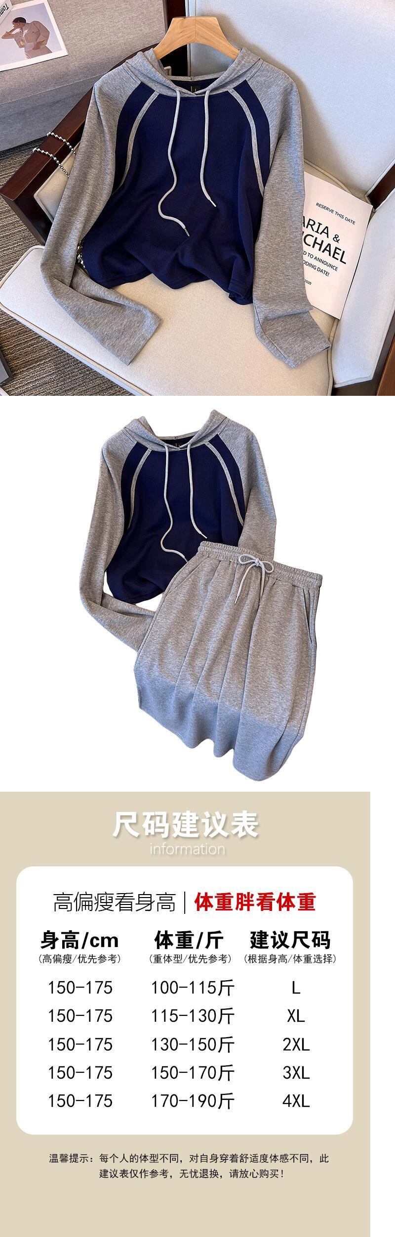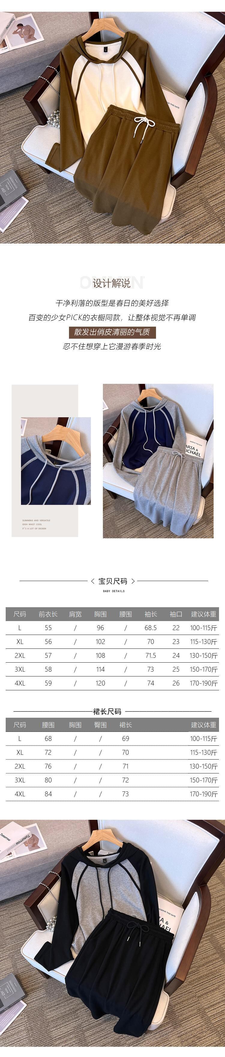 プラスサイズの婦人服 2023 ファットシスター春の新ファッションカジュアルフード付きプリントトップスカートツーピースセット 大きめサイズ スプリング 春物 8884163864610896