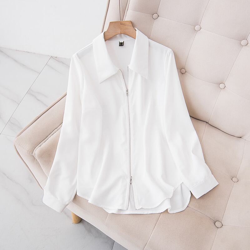 大きいサイズの婦人服 2023 春服脂肪姉妹新しい気質シンプルな無地ジッパー シャツ痩身と年齢を減らすシャツ 大きめサイズ スプリング 春物 ソリッドカラー 8884144041525657
