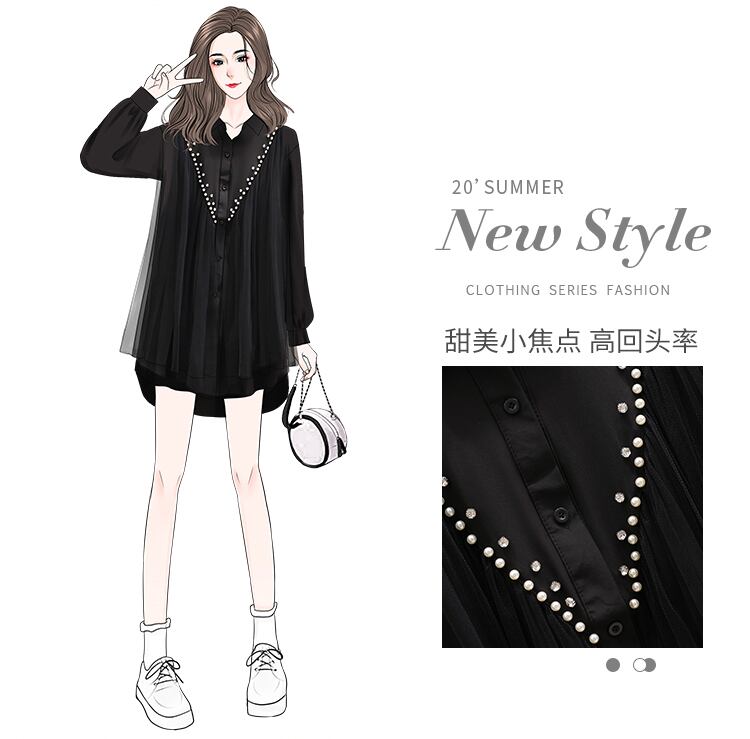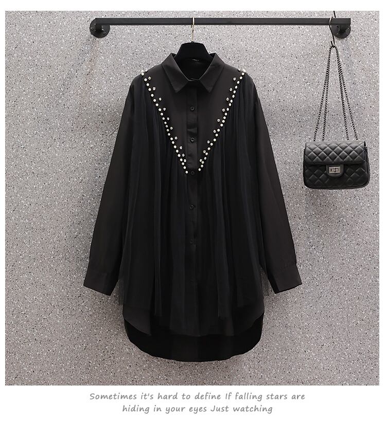 プラスサイズの婦人服 2023 春の新ファッション緩いメッシュステッチカバーベリーミドル丈シャツ女性のフレンチトップ 大きめサイズ スプリング 春物 8884144483833784