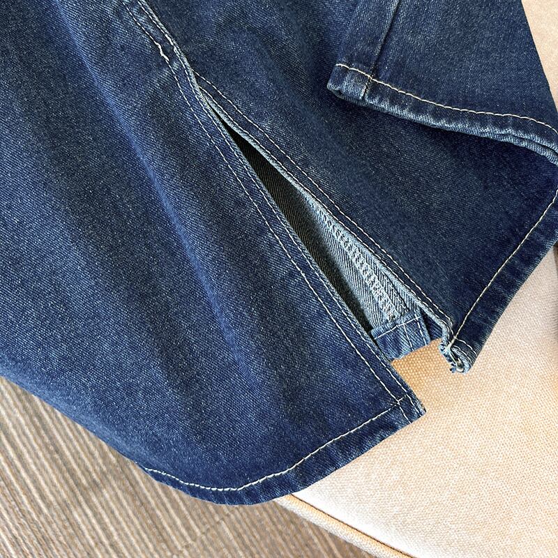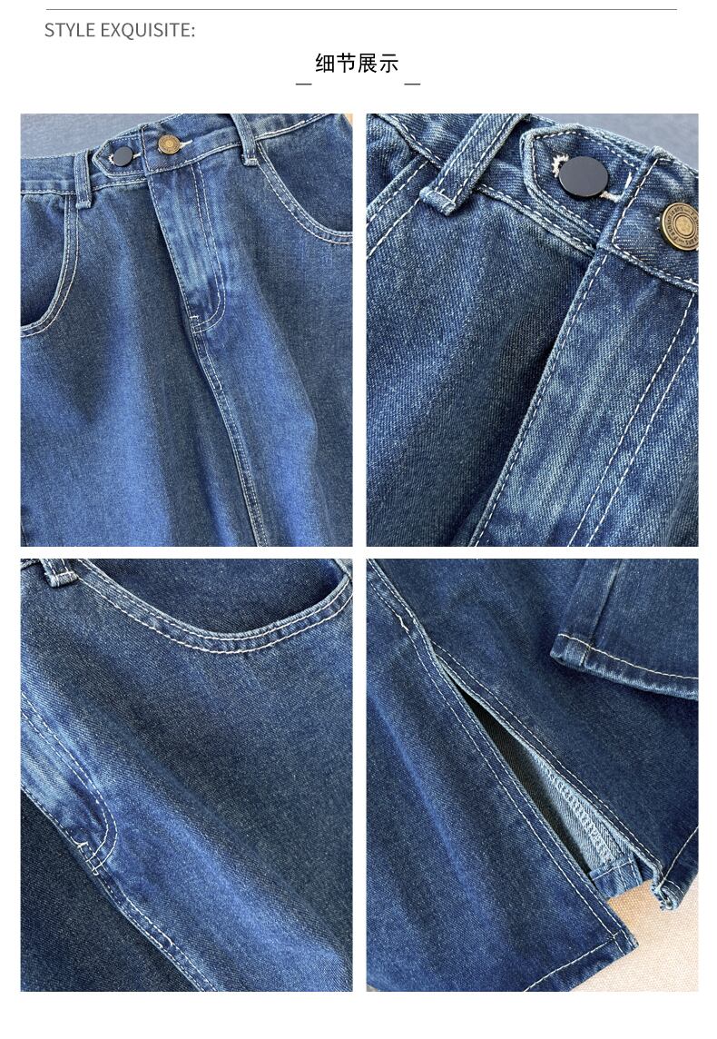 プラスサイズの婦人服2023ファットシスター春の新作スリットAラインスカートミドル丈ハイウエストスリムデニムスカート ハイウェスト 大きめサイズ スプリング 春物 8884156578013066