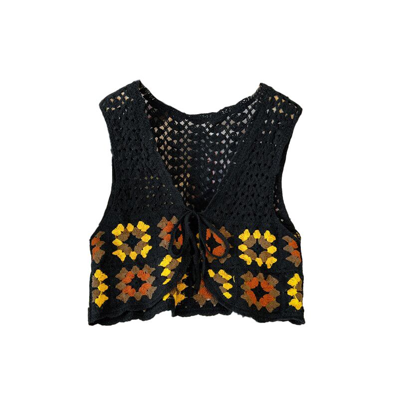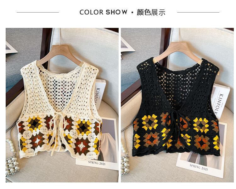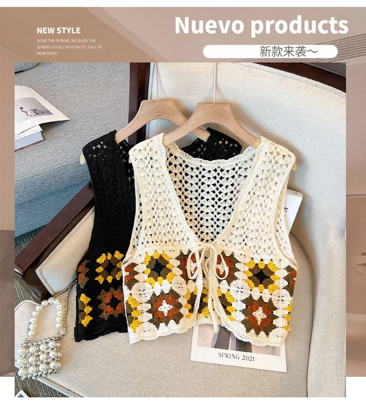 大きいサイズの婦人服 2023 春服ファットシスターズ新作くりぬきかぎ針編みウエスタンスタイルベストレトロカーディガンニットベスト 大きめサイズ スプリング 春物 8884184363113405