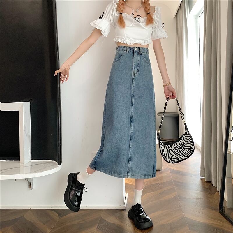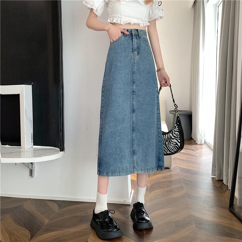 大きいサイズの婦人服 2023 トレンディな女性の春の新しいファット シスター スリット バッグ ヒップ ミッドレングス eign スタイル デニム オールマッチ スカート 大きめサイズ スプリング 春物 8884168479662007
