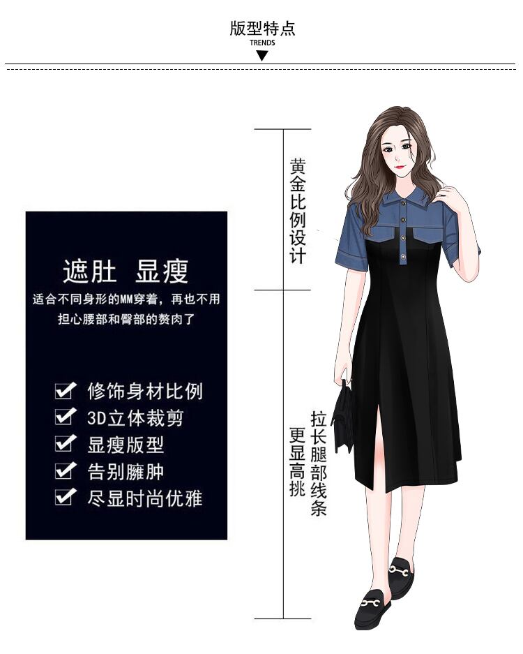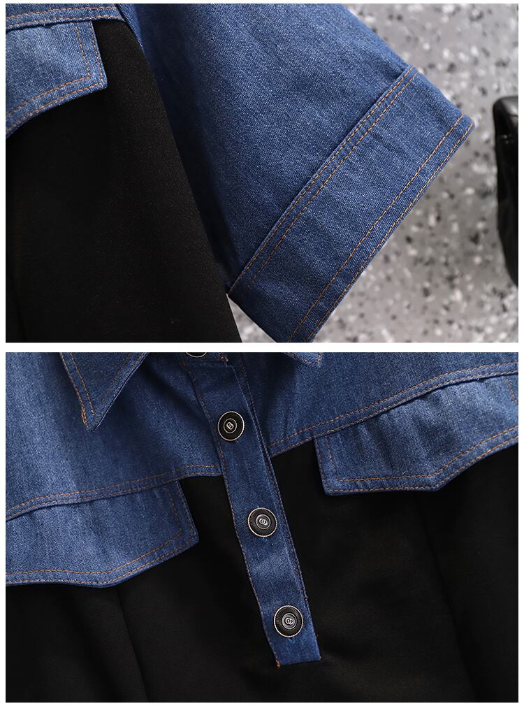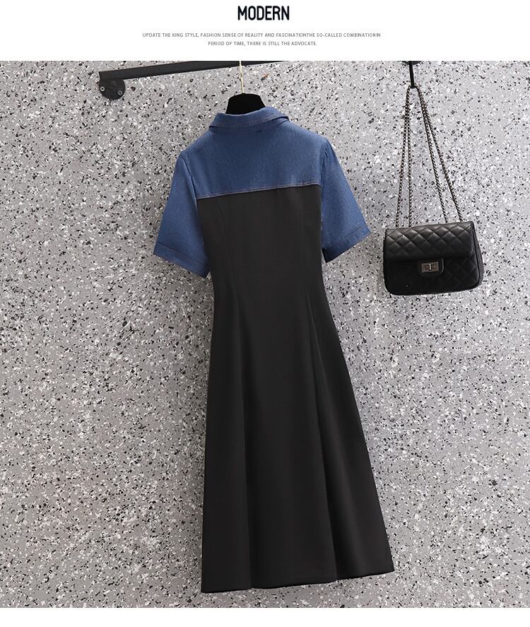 プラスサイズの婦人服 2023 夏の新しい太った姉妹ウエスト気質スプライシング偽のツーピースの肉を覆うデニムのドレスの女性 大きめサイズ サマー 夏物 888419572096360