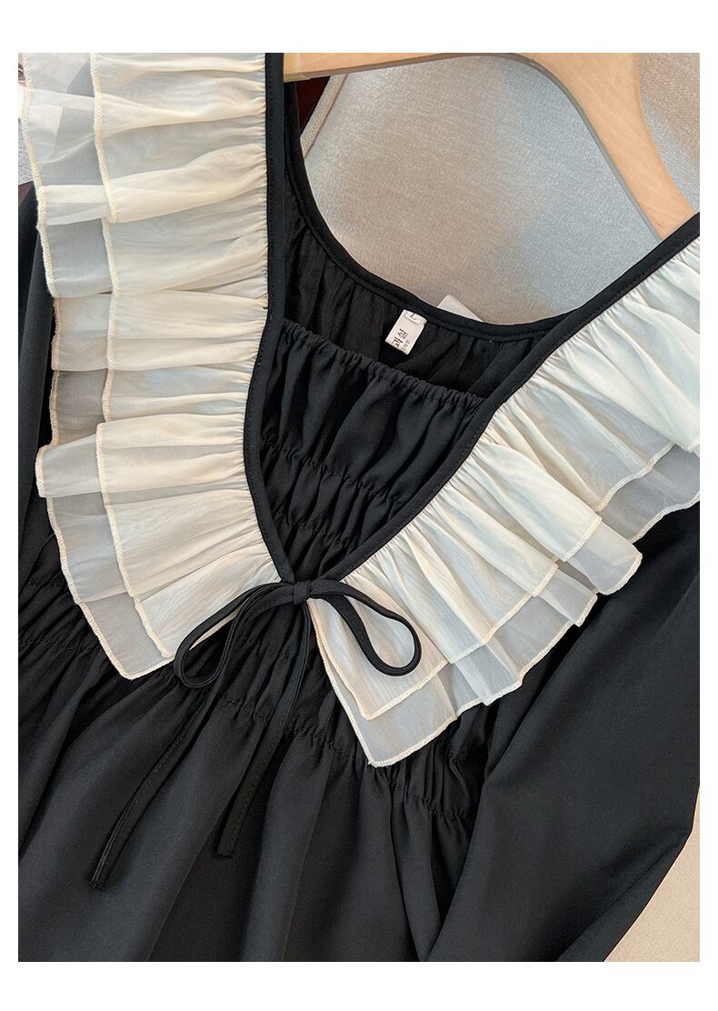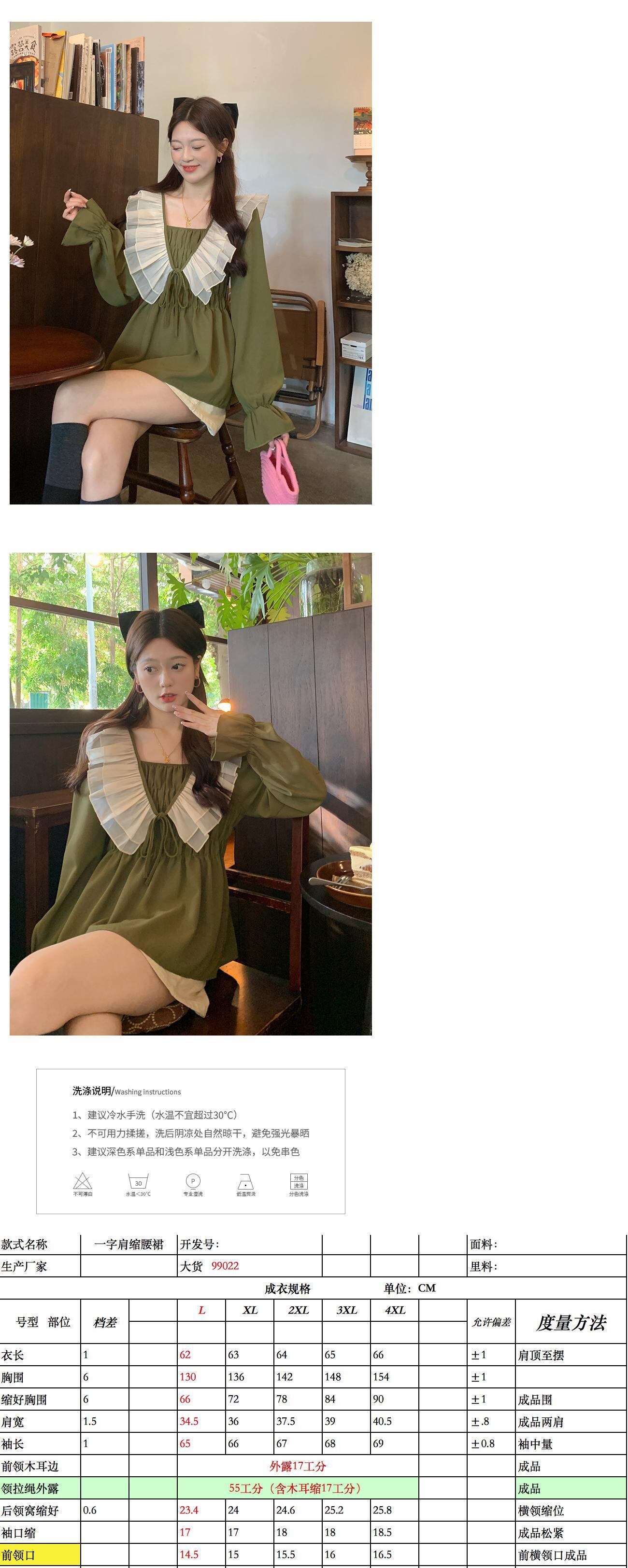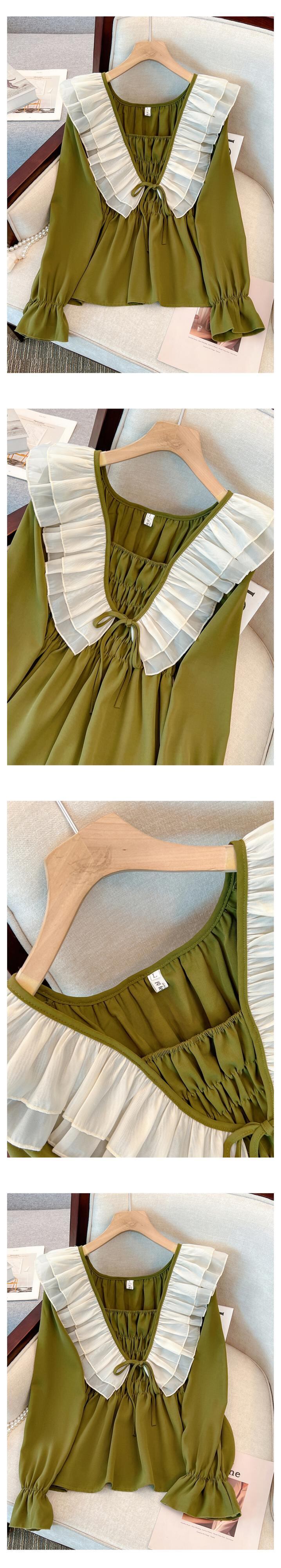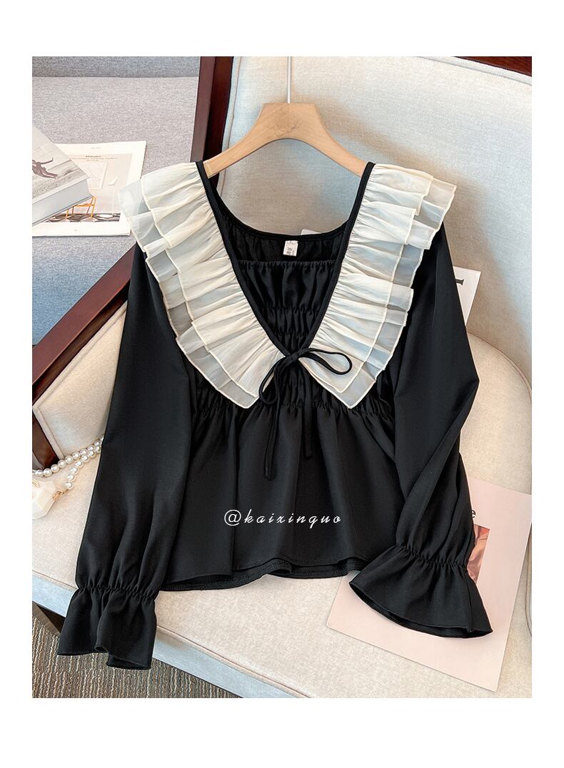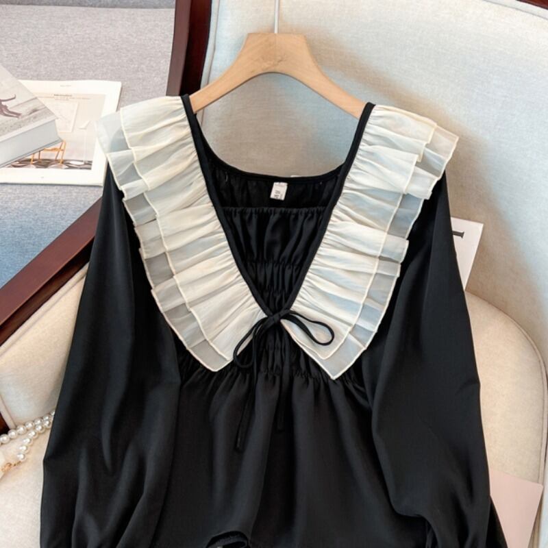 大きいサイズの婦人服 2023 春服ファットシスターズの新しいシンプルなバージョンの蓮の葉エッジシャツルーズ長袖トップ女性 ロング 大きめサイズ スプリング 春物 8884110634333042
