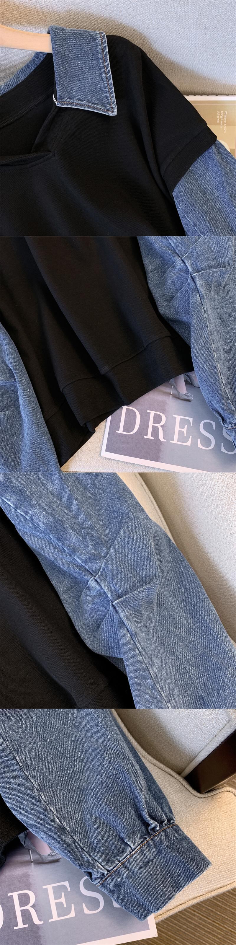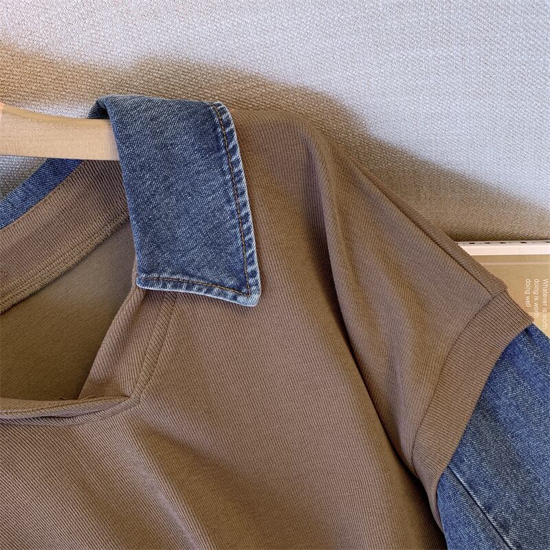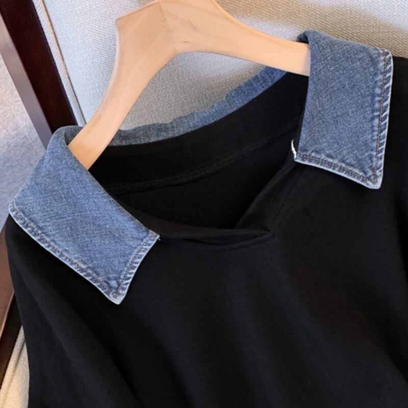 大きいサイズの婦人服 2023 春の新しいスタイルの太った姉妹のデザインの気質のスプライシング デニムのゆったりとした薄いカジュアルなセーター 大きめサイズ スプリング 春物 8884196668945919