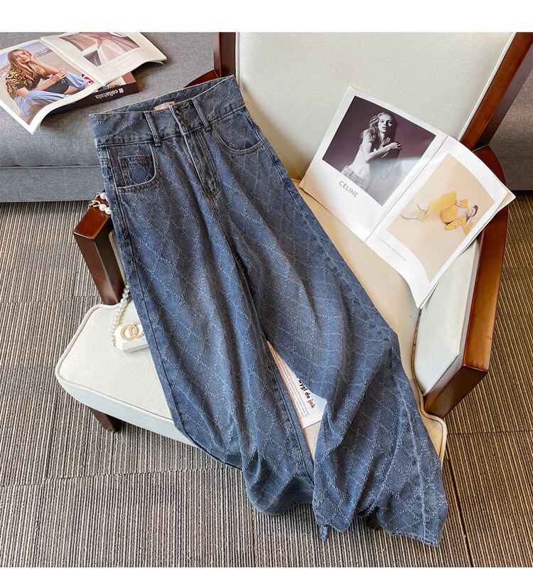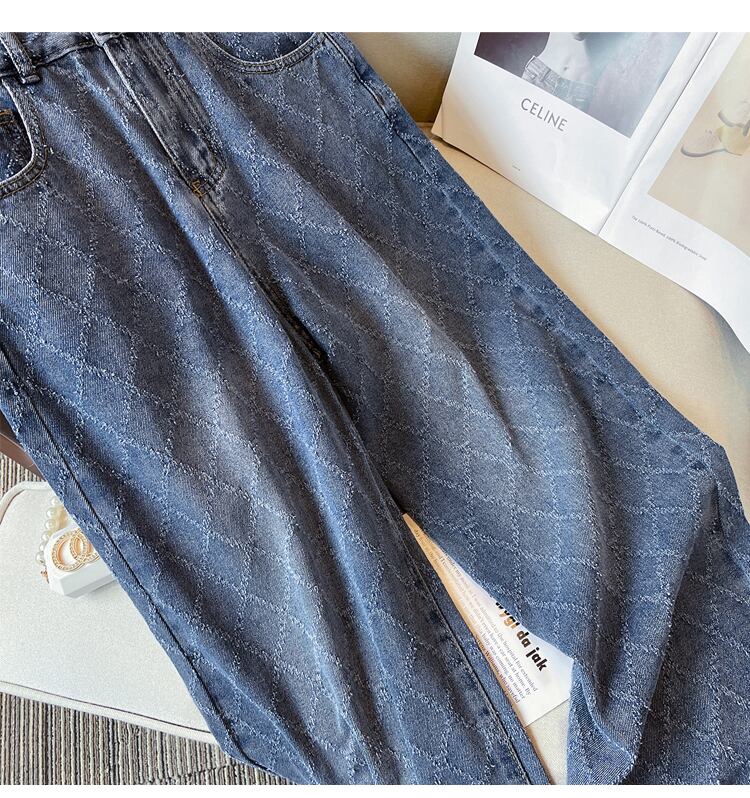 プラスサイズの女性の 2023 春服脂肪姉妹洋ナシボディトランペットデザインハイウエストストレートレトロジーンズワイドレッグパンツ ハイウェスト 大きめサイズ スプリング 春物 ワイドパンツ 8884175860237216