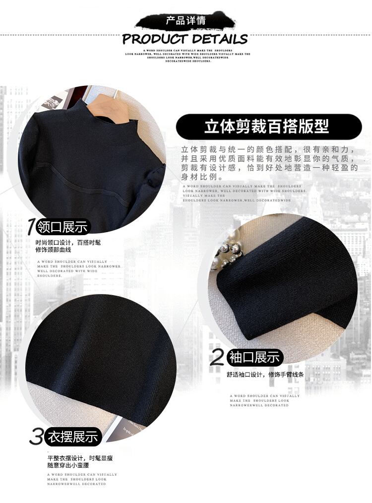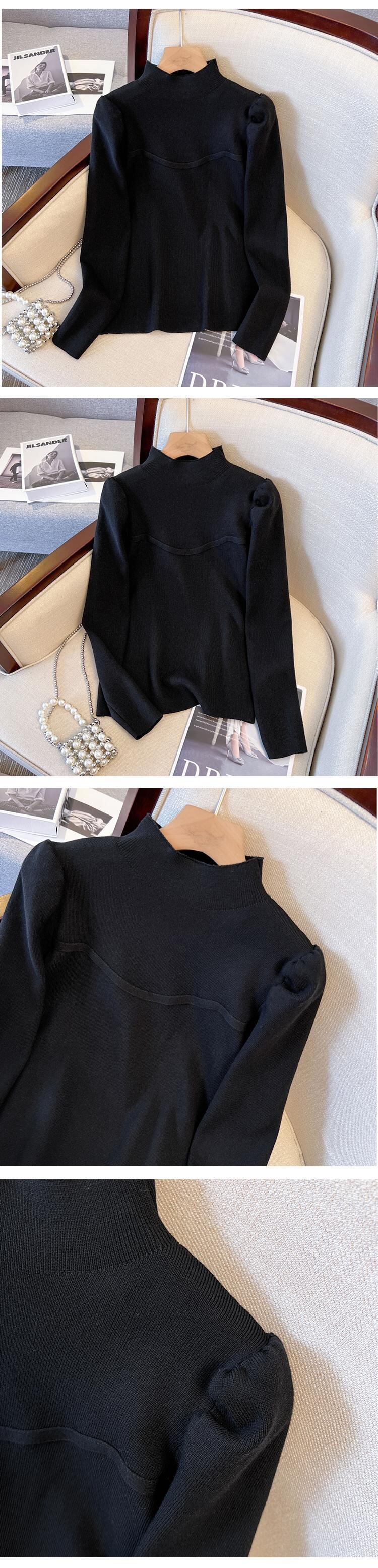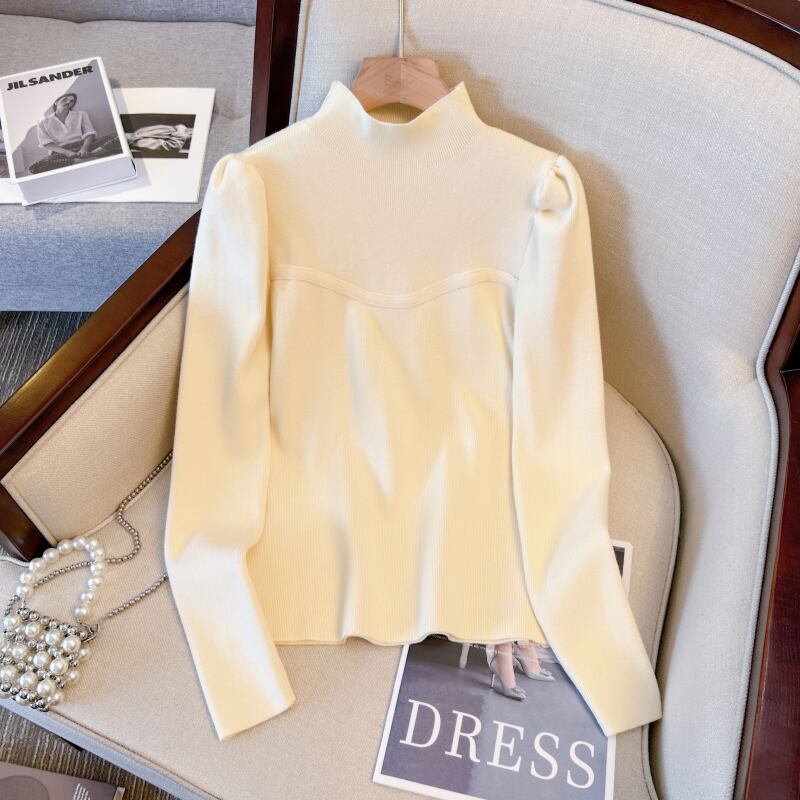 プラスサイズの婦人服 2023 ファットシスター春の新ハーフハイカラーパフスリーブニットトップ底入れセーター女性 大きめサイズ スプリング 春物 8884180687243707