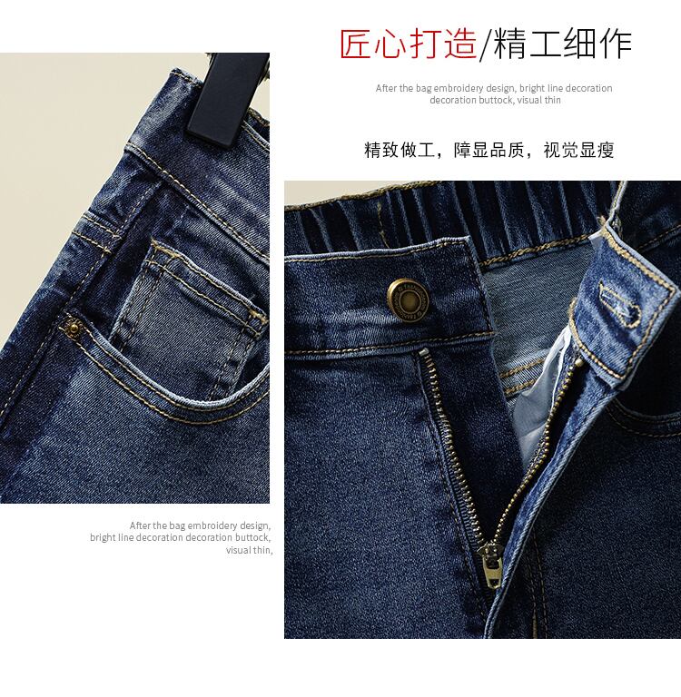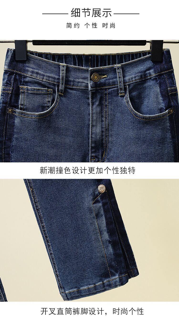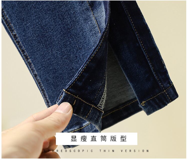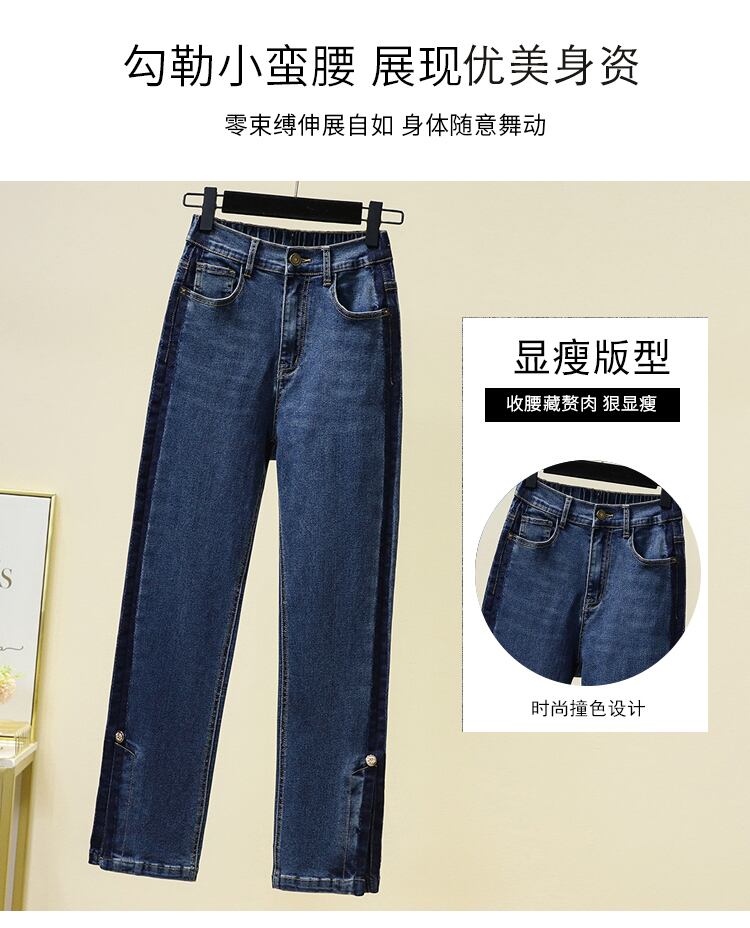 プラスサイズの婦人服 2023 春服新しい太った姉妹オールマッチ ハイウエスト ストレートレッグ薄いストレッチ ジーンズ女性 大きめサイズ スプリング 春物 8884114070632738