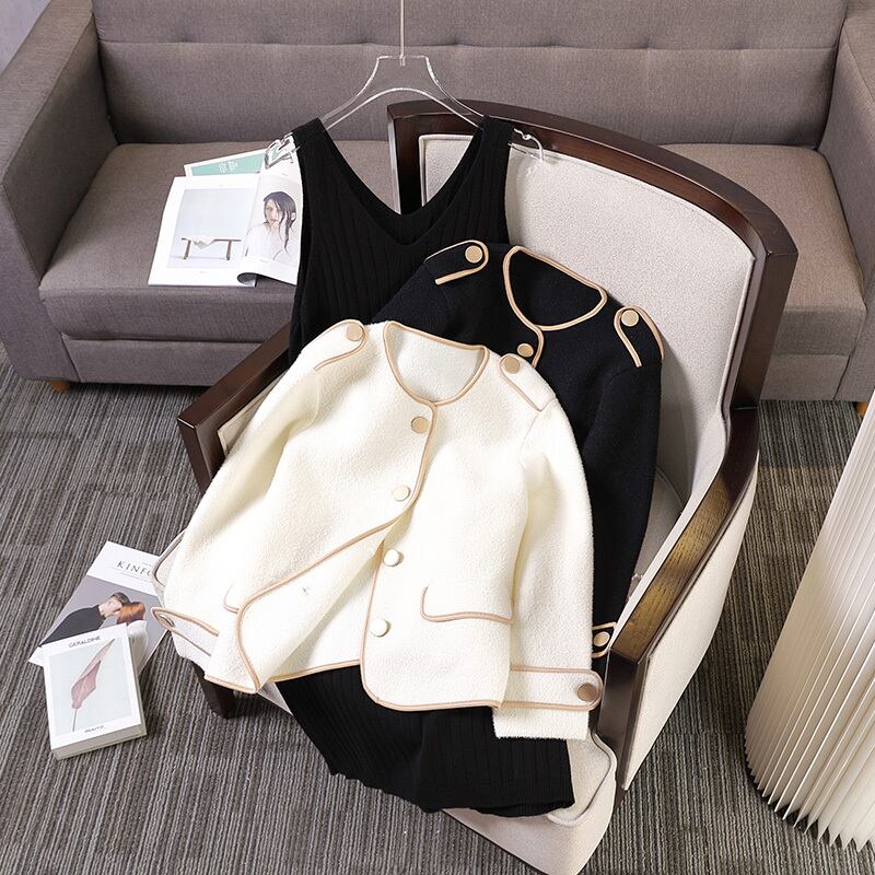 プラスサイズの婦人服 2023 ファットシスター春の新ファッションカーディガンミンクコートベストドレスツーピースセット 大きめサイズ スプリング 春物 8884151501834707