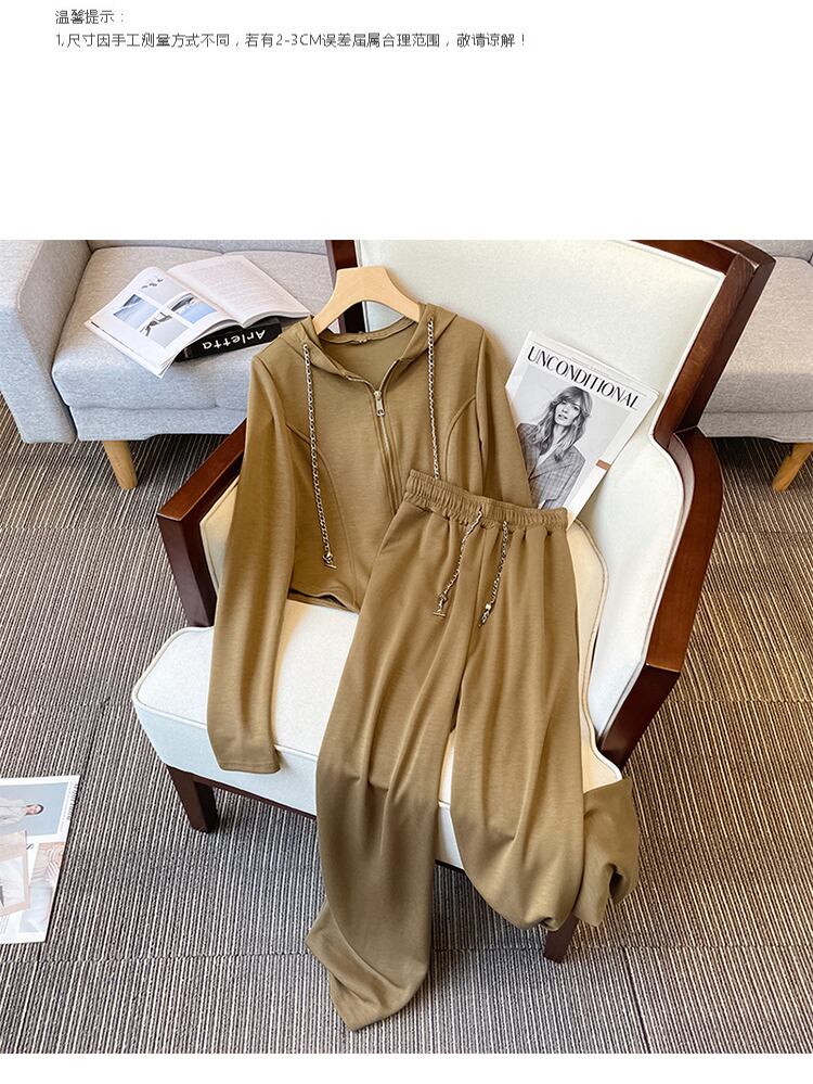 プラスサイズの婦人服2023春服ファットシスターズ新しいフード付きカーディガンジャケットワイドレッグパンツスリムカジュアルツーピーススーツ 大きめサイズ スプリング 春物 888414567295629