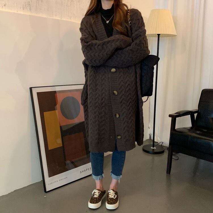 プラスサイズの婦人服 2023 ファットシスター春の新バージョンルーズで薄い長袖カーディガンセーターミドル丈コート ロング 大きめサイズ スプリング 春物 8884131676642393
