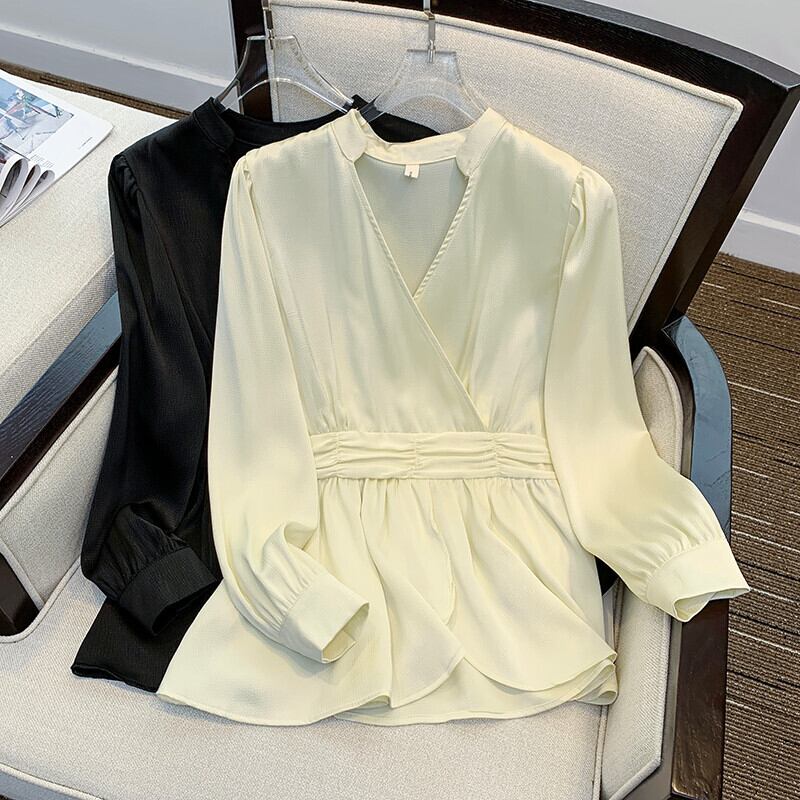 プラスサイズの婦人服 2023 脂肪姉妹春の新ファッション v ネックシフォンシャツ痩身と老化ファッション小さなシャツトップ 大きめサイズ スプリング 春物 Vネック 8884172878167790
