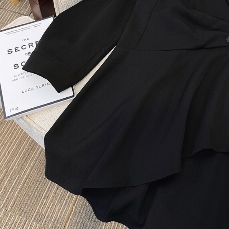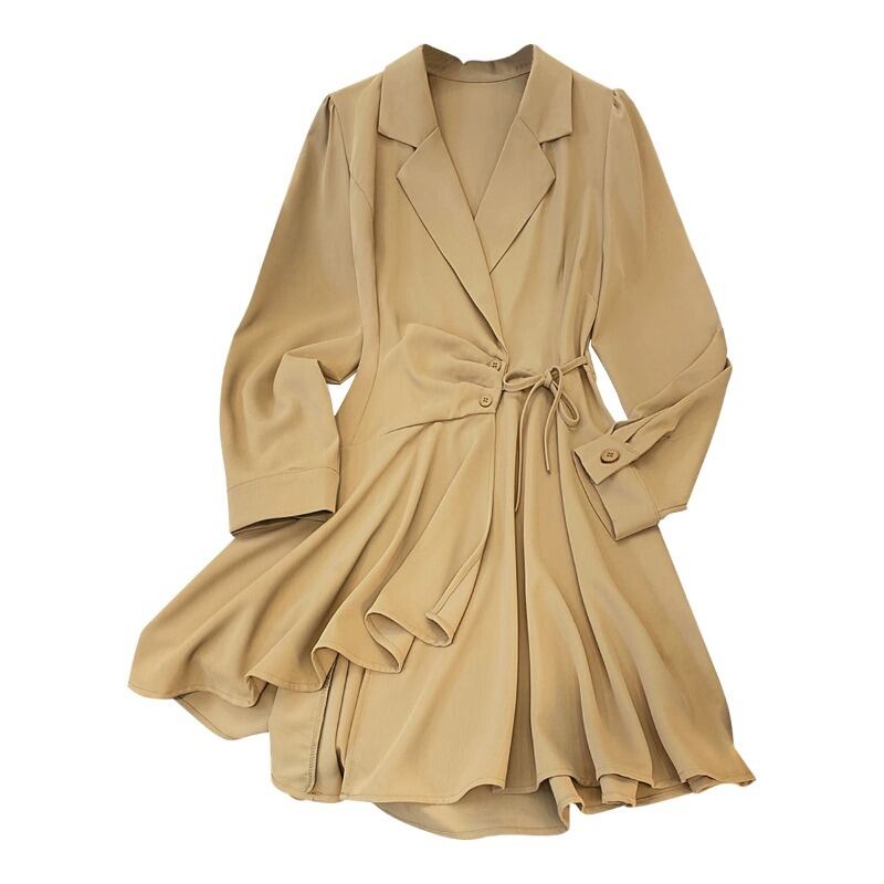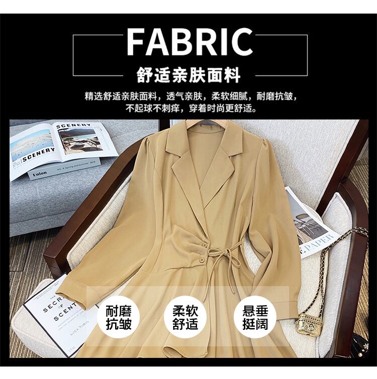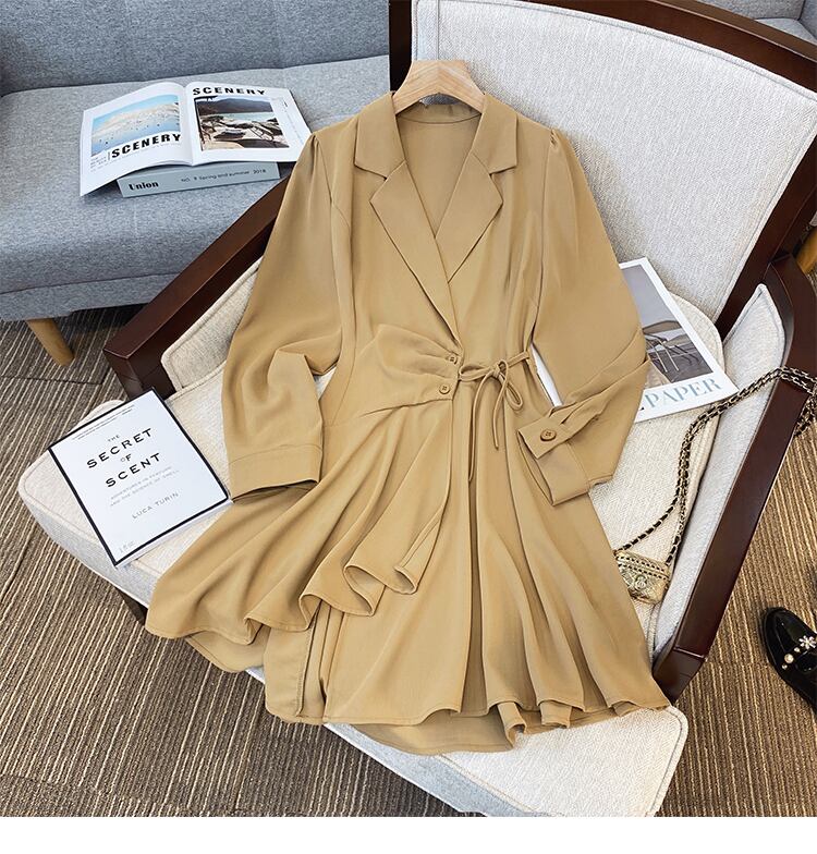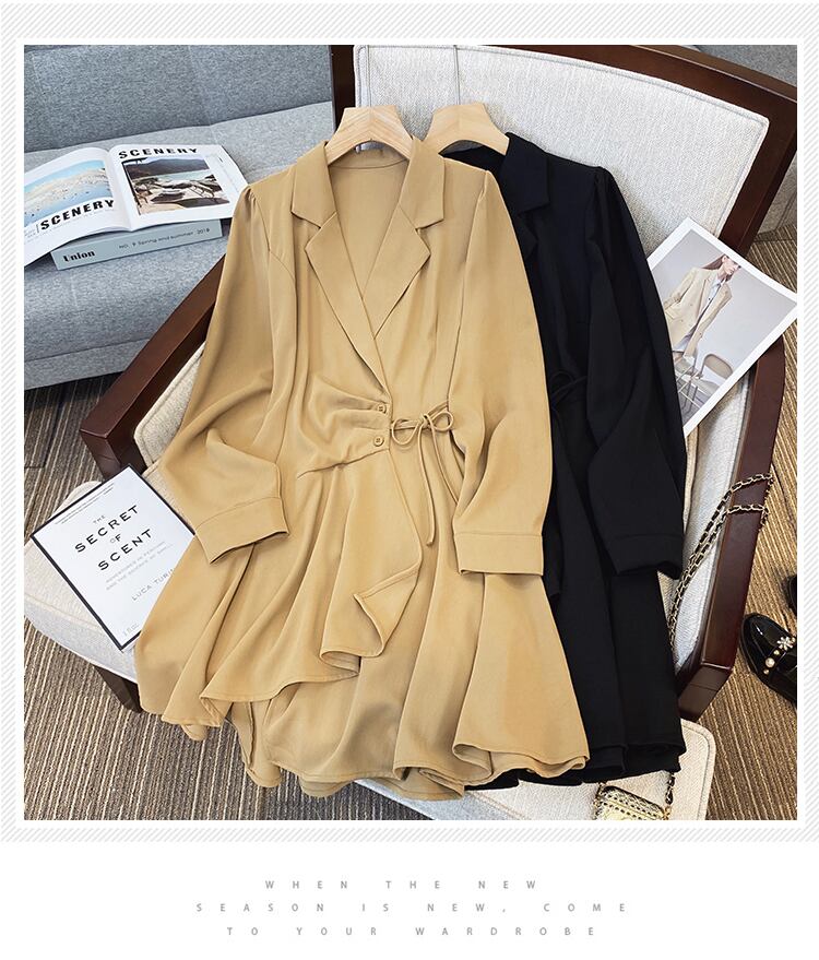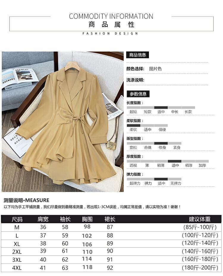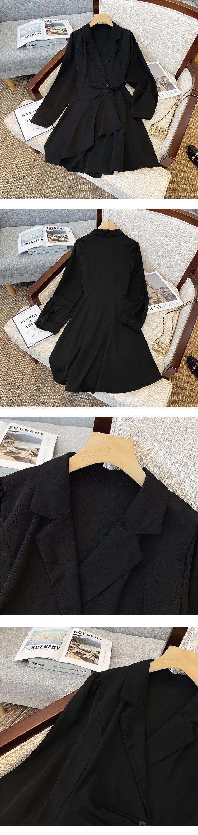 大きいサイズの婦人服 2023 春の新しいファットシスターレトロスーツ襟ウエスト不規則なネクタイドレス女性 大きめサイズ スプリング 春物 8884160758473960