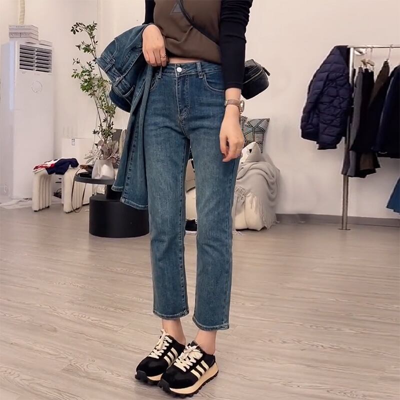 プラスサイズの婦人服 2023 春服ファットシスターズ新ファッション九点パンツストレートレッグジーンズ痩身弾性シガレットパンツ エラスティック 伸縮 大きめサイズ スプリング 春物 8884188890947918