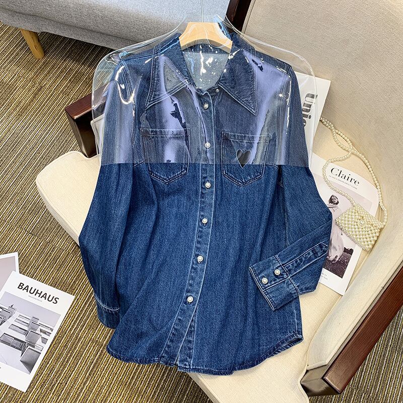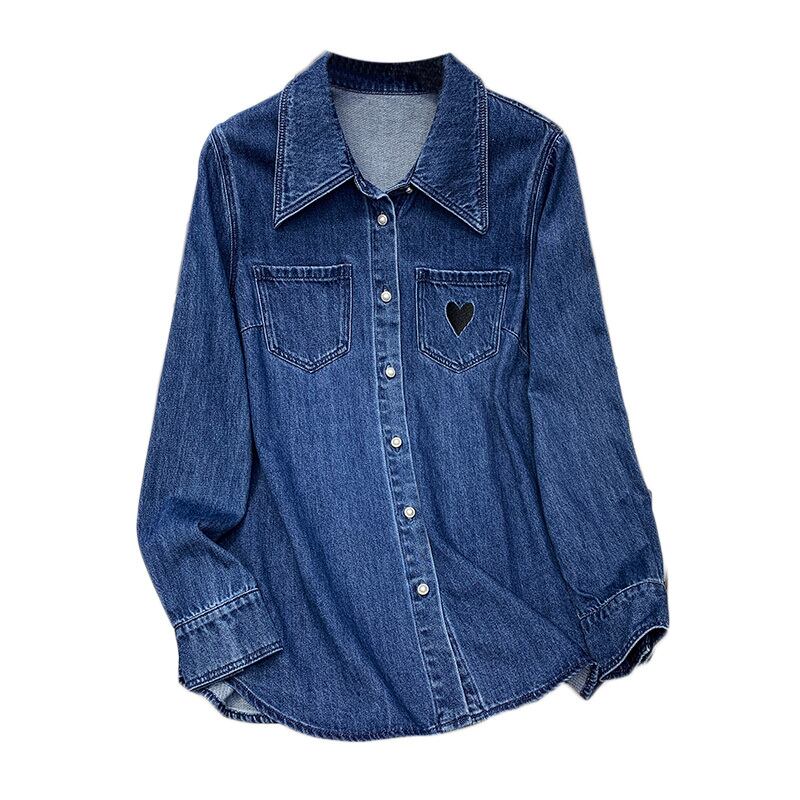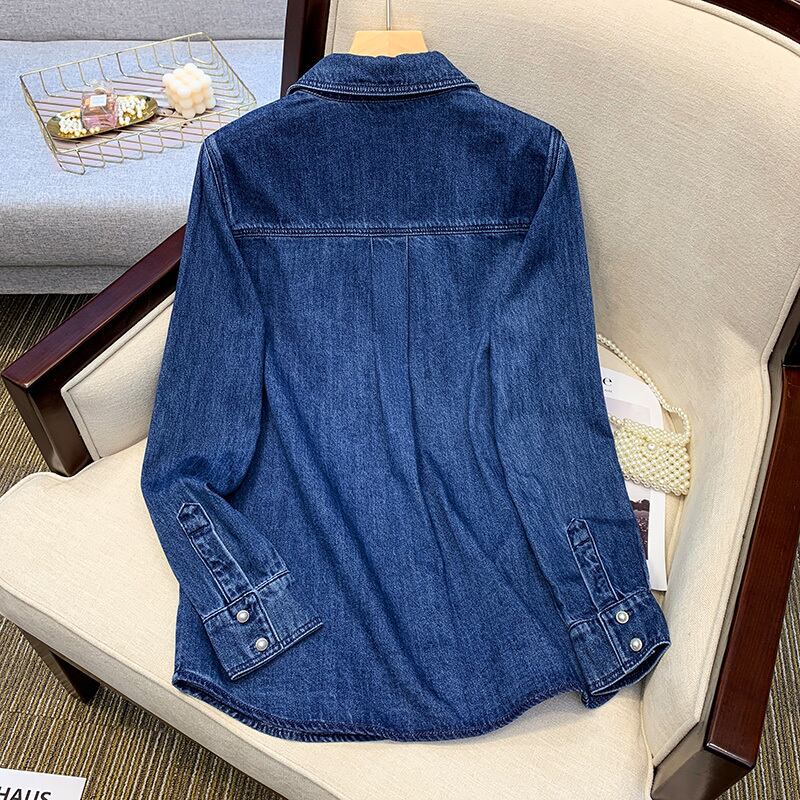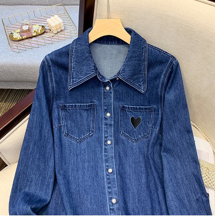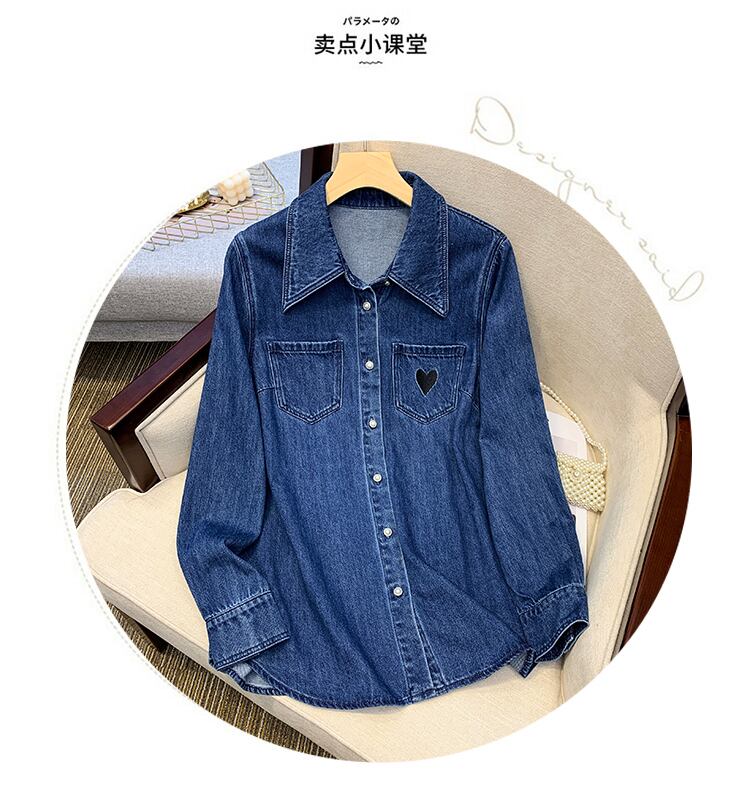 プラスサイズの婦人服 2023 春の新しいスタイルのファットシスタールースバージョンポロ襟スリム気質のシックなデニムシャツ 大きめサイズ スプリング 春物 8884158269815704