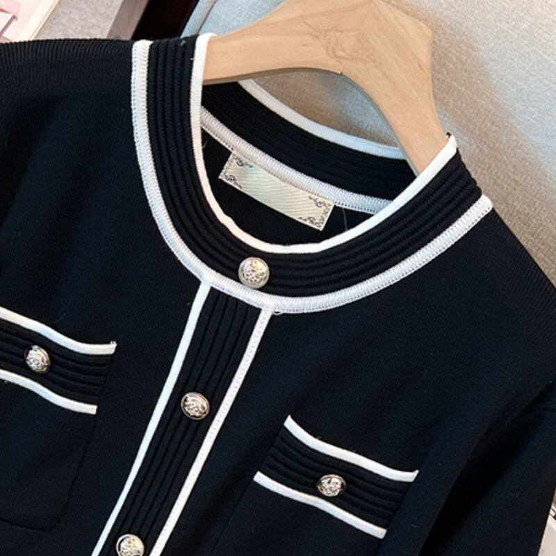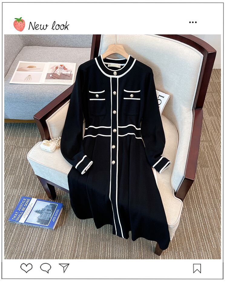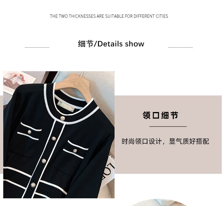 プラスサイズの婦人服 2022 冬の新しいスタイルの太った姉妹に見える薄い気質の配色デザインセンスラウンドネックのシックなニットセーターの女性 大きめサイズ ウィンター 冬物 Oネック 8884135939122394