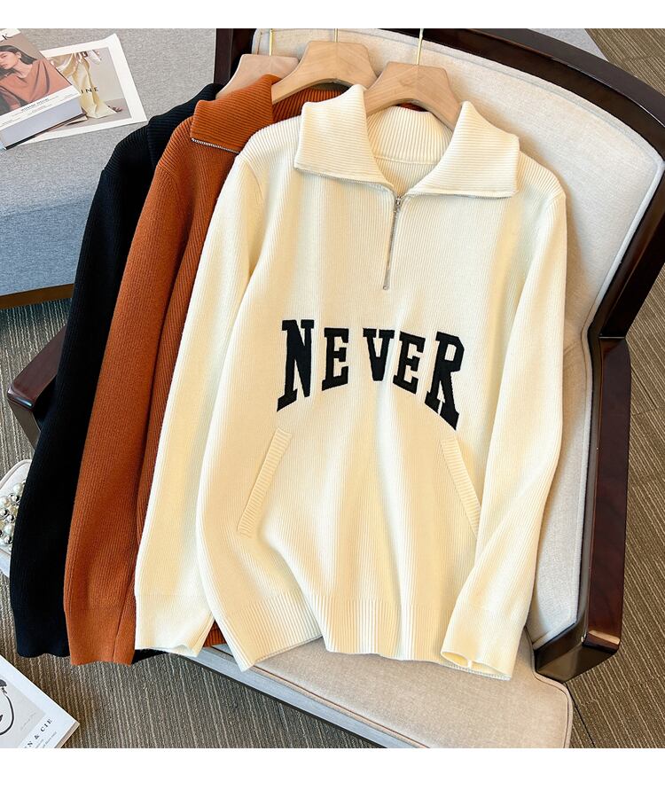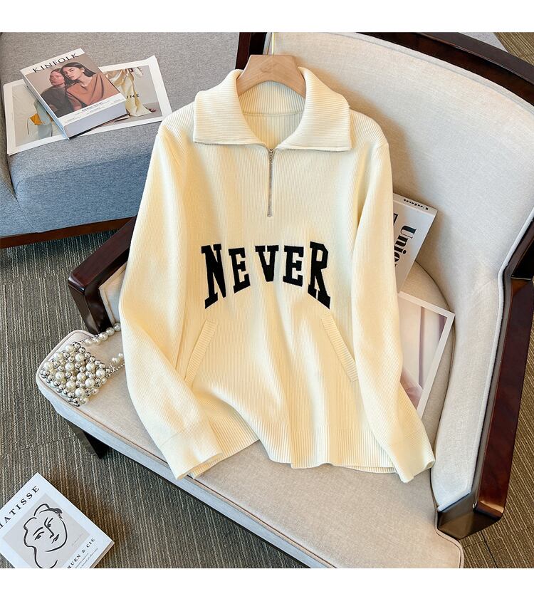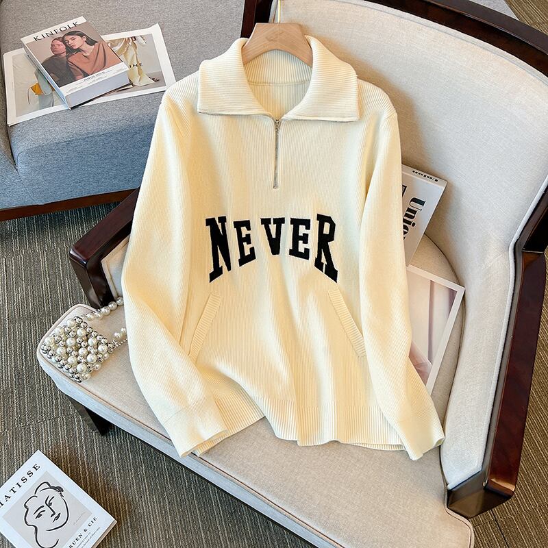プラスサイズの婦人服 2023 ファットシスター春の新しいルーズレター刺繍ポロ襟カジュアルニットセータートップ 大きめサイズ スプリング 春物 8884130306252387