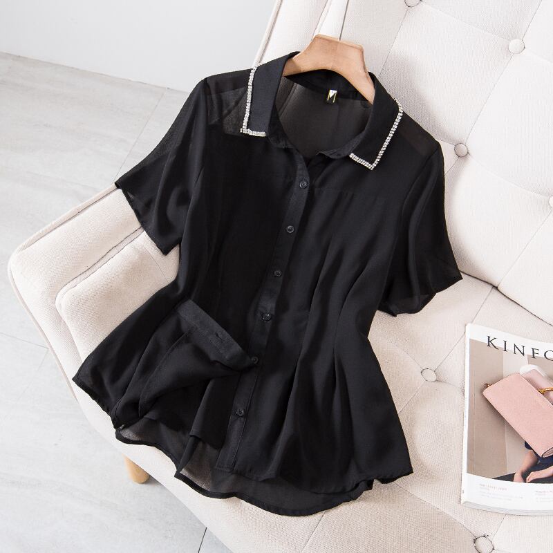 大きいサイズの婦人服2023ファットシスター夏の新しいファッションの年齢を減らす西洋スタイルのウエストウエストオールマッチ半袖シャツトップ 大きめサイズ サマー 夏物 8884171411520533