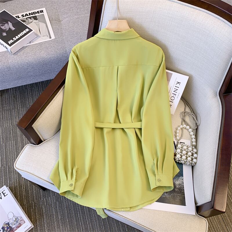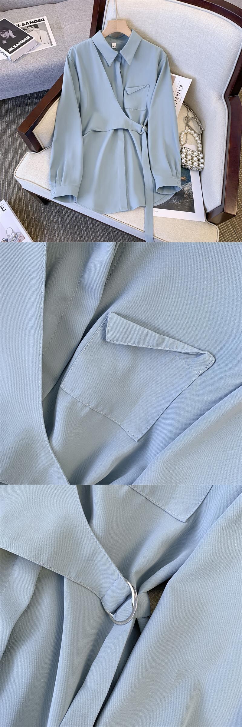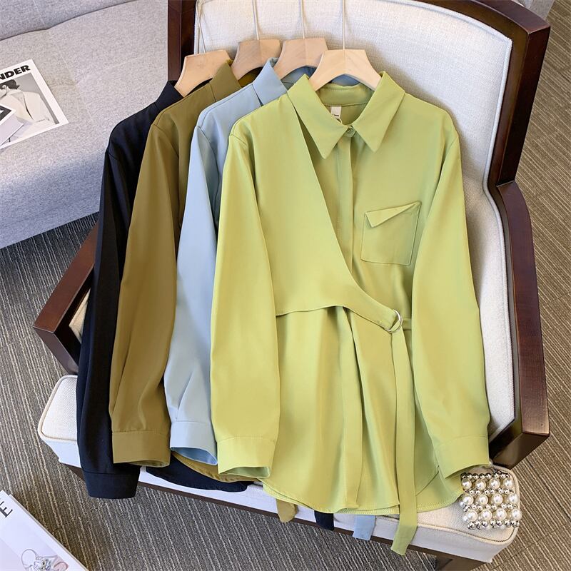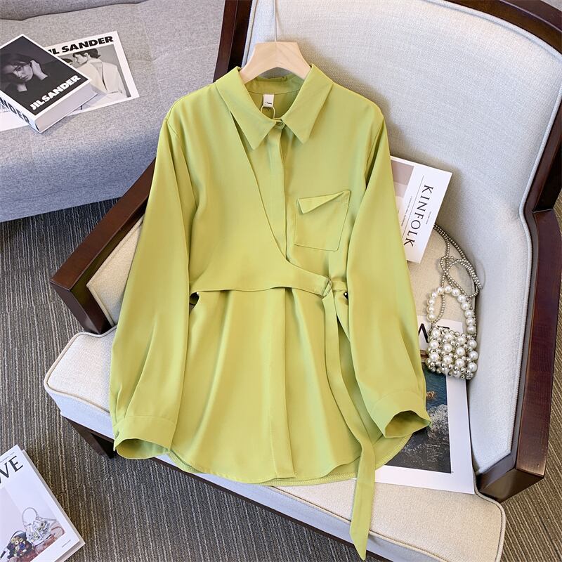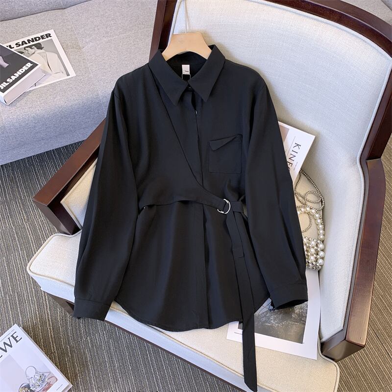 プラスサイズの婦人服 2023 春の新スタイル脂肪姉妹ファッション気質スリムウエストデザインスプライシング無地シャツ 大きめサイズ スプリング 春物 ソリッドカラー 8884113885814904