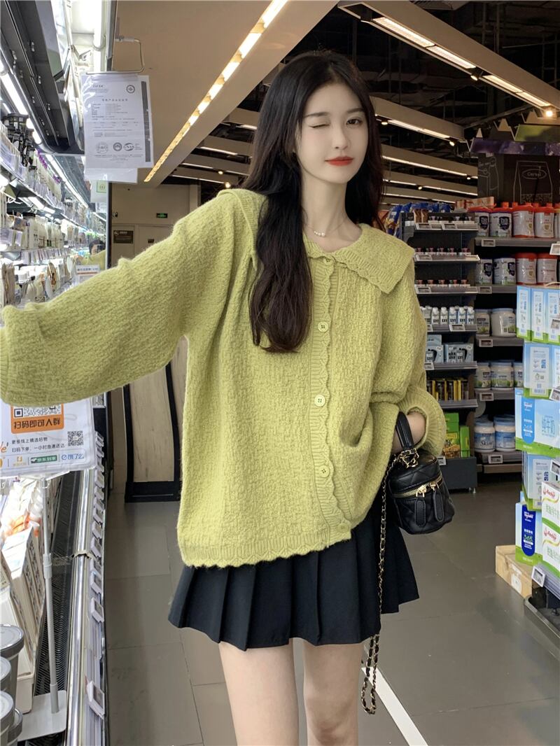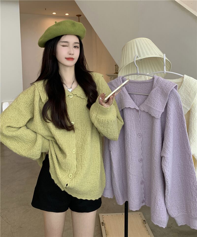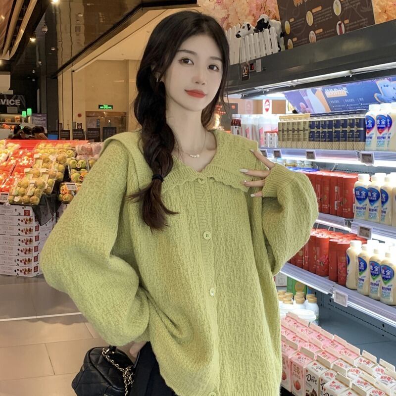 大きいサイズの婦人服 2023 春服ファットシスターズ新カーディガンセータールーズシンプルラペルセータージャケット女性 大きめサイズ スプリング 春物 8884182880100493