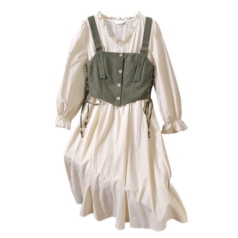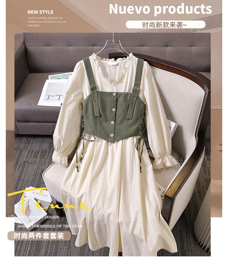 プラスサイズの婦人服 2023 脂肪姉妹春の新ファッションサスペンダーベストウエスト痩身ドレスツーピーススーツ 大きめサイズ スプリング 春物 8884166516722791