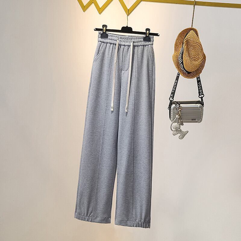 プラスサイズの婦人服 2023 夏服脂肪姉妹新しいカジュアル巾着ゴムウエストワイドレッグパンツズボンは薄くてルーズに見えます エラスティック 伸縮 大きめサイズ サマー 夏物 8884125560897016