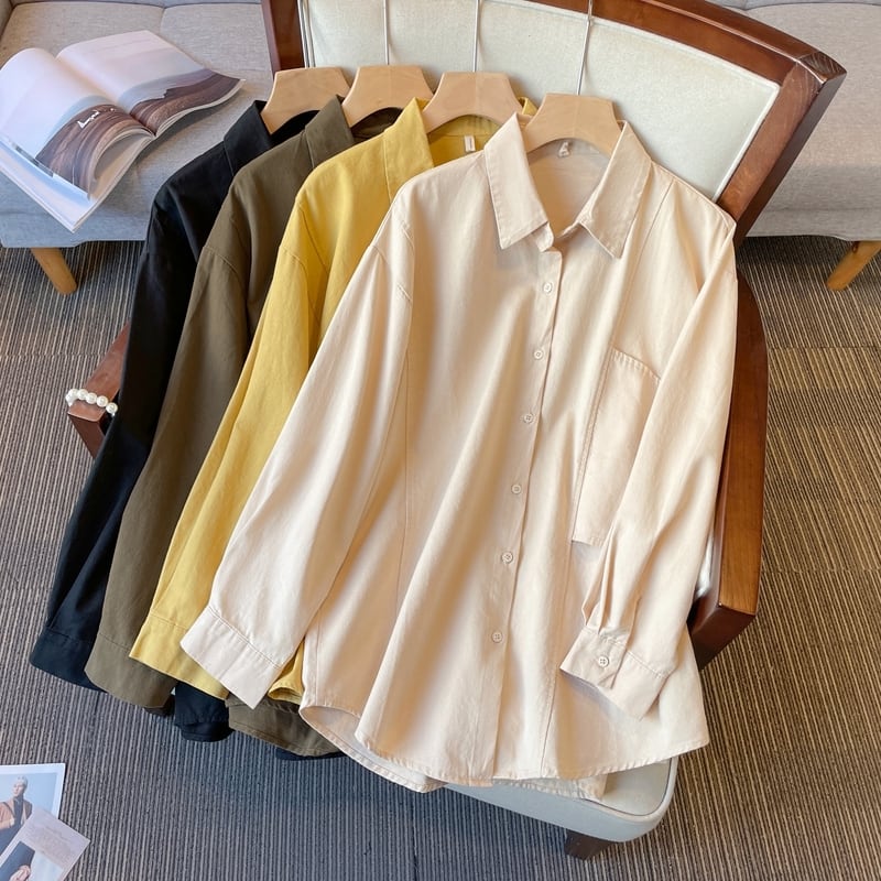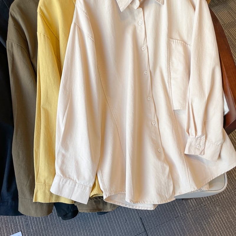 プラスサイズの婦人服 2023 春の新しいファットシスター気質の年齢減少緩いデザインセンス無地シックなシャツの女性 大きめサイズ スプリング 春物 ソリッドカラー 8884161919940395