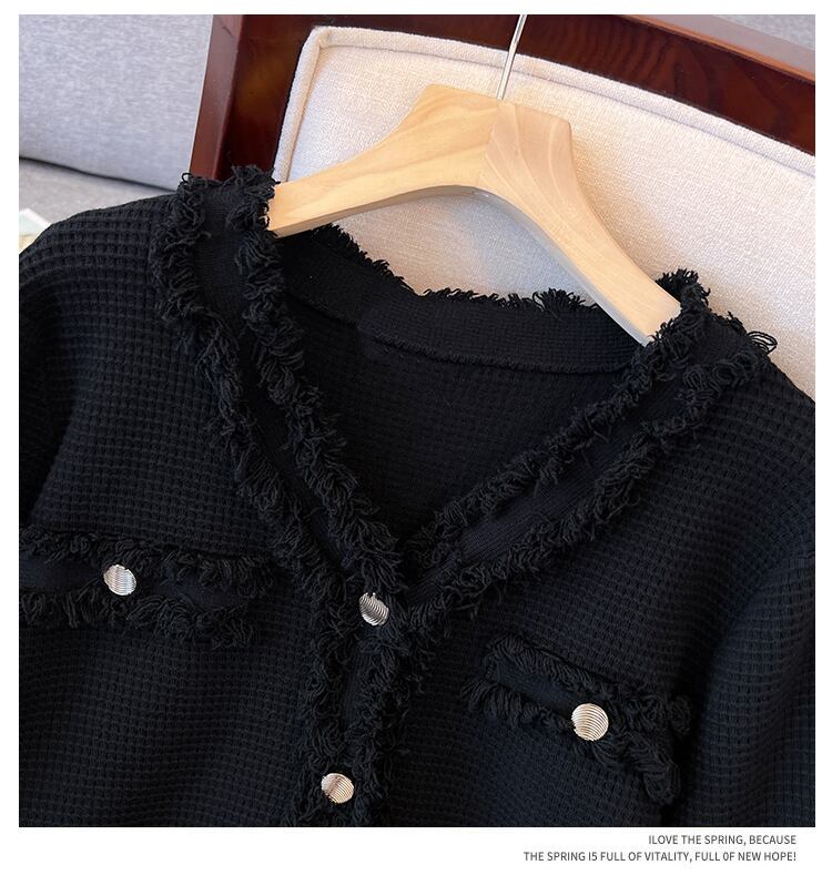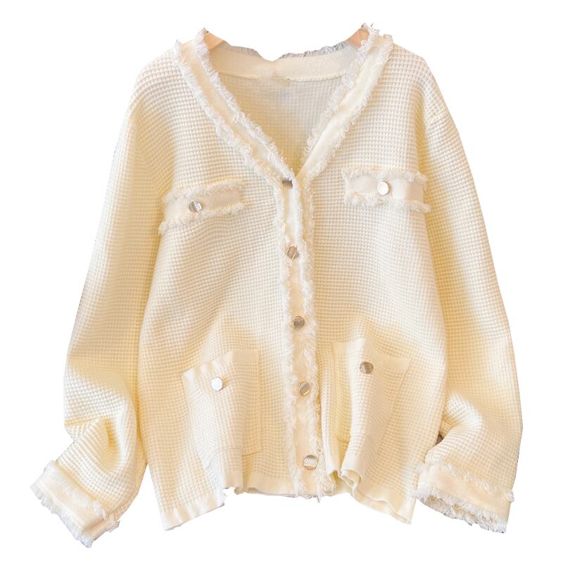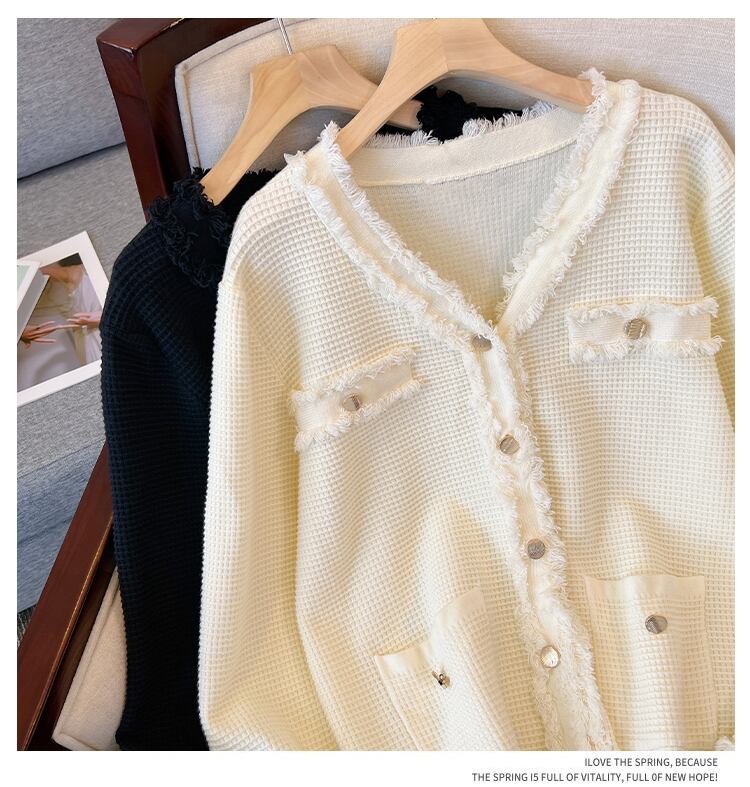プラスサイズの婦人服 2023 春服脂肪姉妹新しいファッション緩い生エッジ V ネックシングルブレストセータージャケット女性 大きめサイズ スプリング 春物 Vネック 8884116940925846