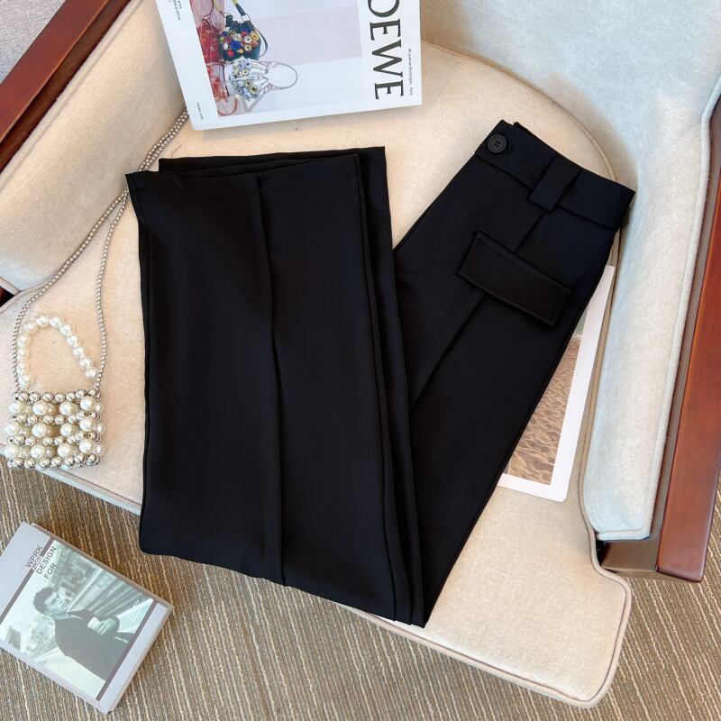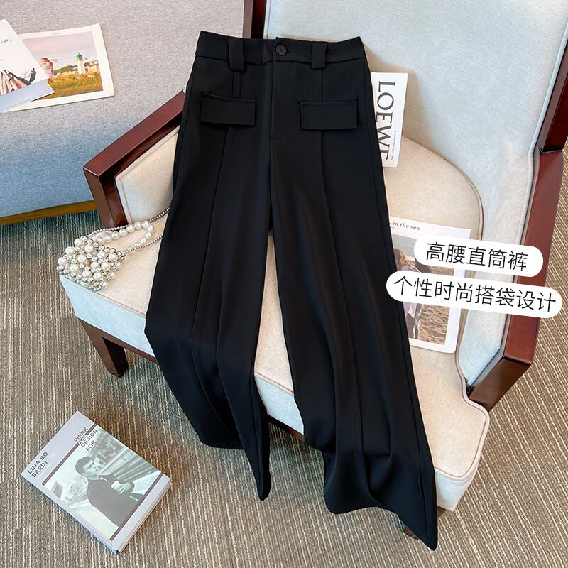 プラスサイズの婦人服 2023 春服脂肪姉妹新しいスーツワイドレッグパンツハイウエストドレープストレートカジュアル床モップパンツ ハイウェスト 大きめサイズ スプリング 春物 8884173956058000