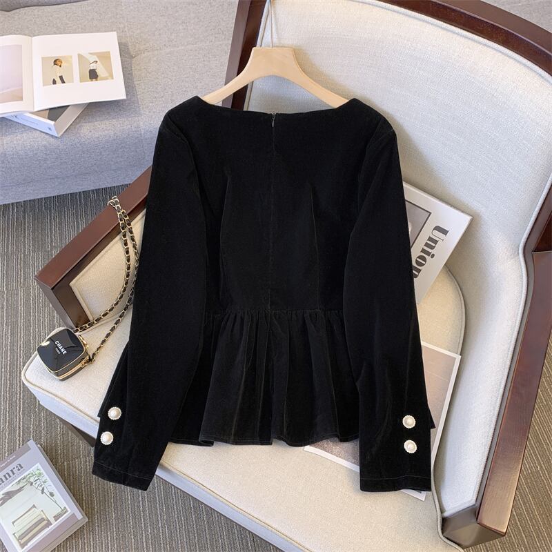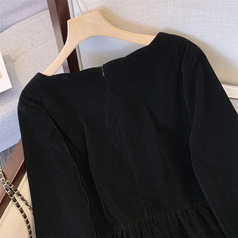プラスサイズの婦人服 2023 ファットシスター春の新フレンチスタイルウエスト痩身ヘップバーンスタイルのベルベット長袖トップ女性 ロング 大きめサイズ スプリング 春物 8884155904858071