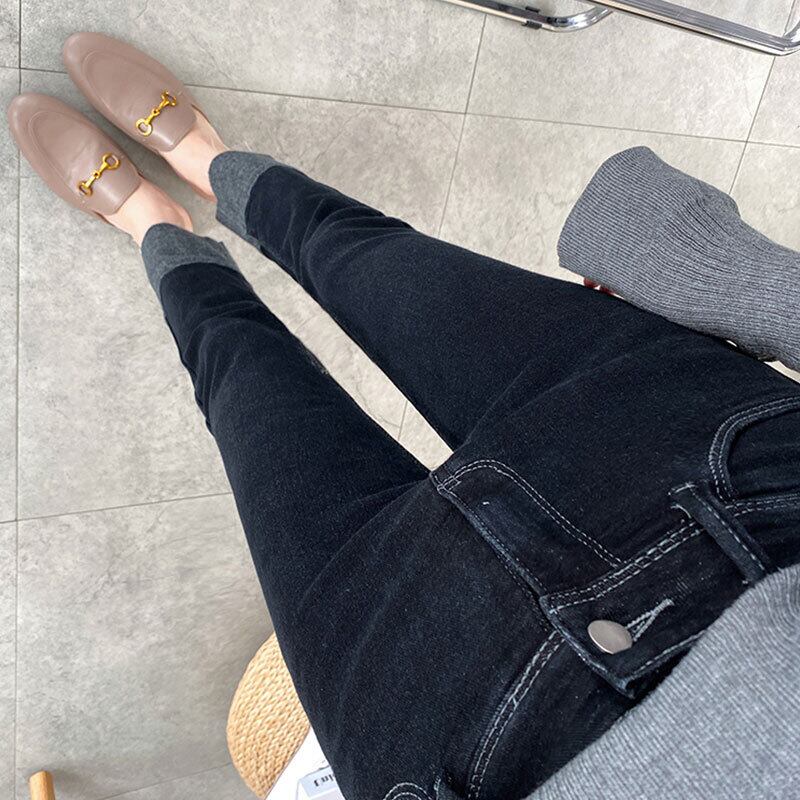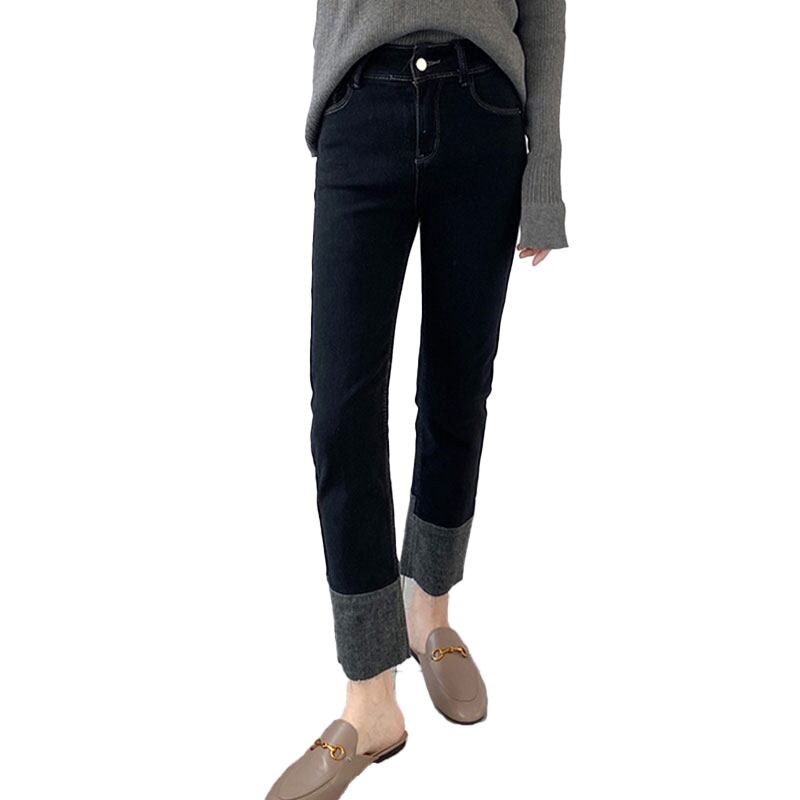 プラスサイズの婦人服 2023 ファットシスター春の新フリースストレートチューブパンツハイウエスト薄型 9 点ジーンズ女性 ハイウェスト 大きめサイズ スプリング 春物 8884150845892121