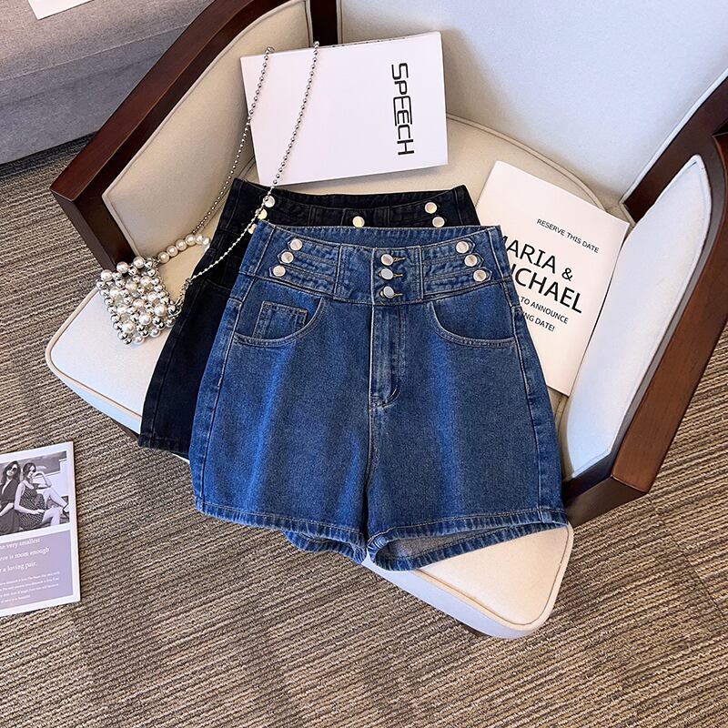 プラスサイズの婦人服 2023 ファットシスター夏の新ファッションファッション痩身背の高いウエスト薄いデニムショーツ 大きめサイズ サマー 夏物 ブルマー 8884138680316920