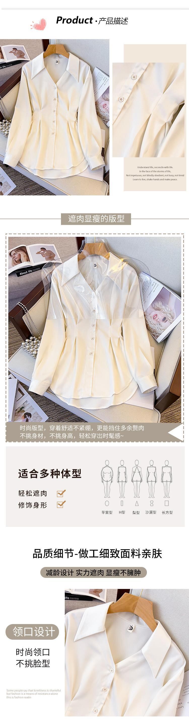プラスサイズの婦人服 2023 春服脂肪姉妹新しいファッションオールマッチ年齢を減らす無地ウエスト V ネック長袖シャツ女性 ロング 大きめサイズ スプリング 春物 Vネック ソリッドカラー 8884199819179739