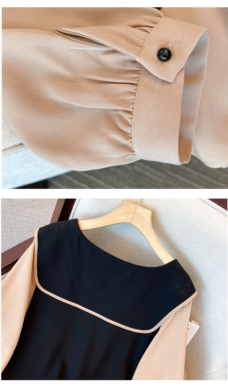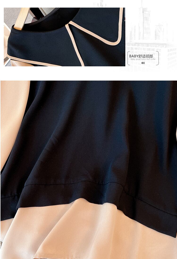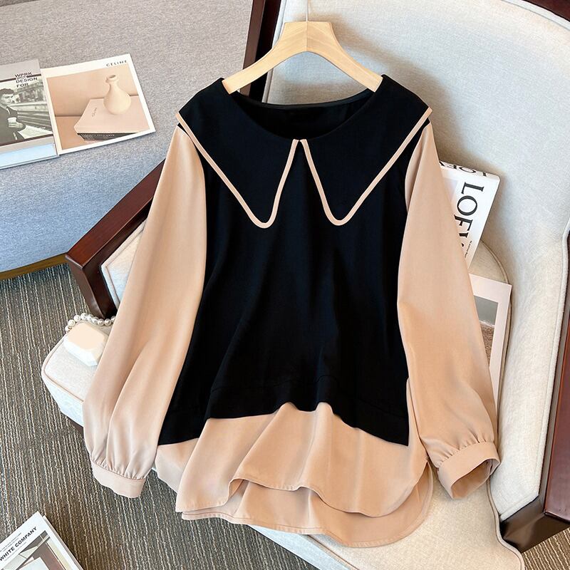 プラスサイズの婦人服 2023 トレンディな女性の春の新しいファットシスタースプライシング偽のツーピースの人形の襟オールマッチスリムルーズシャツ 大きめサイズ スプリング 春物 8884174948113669