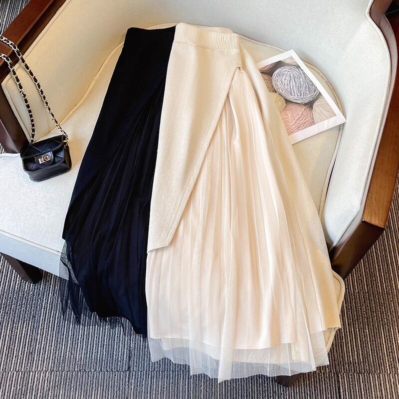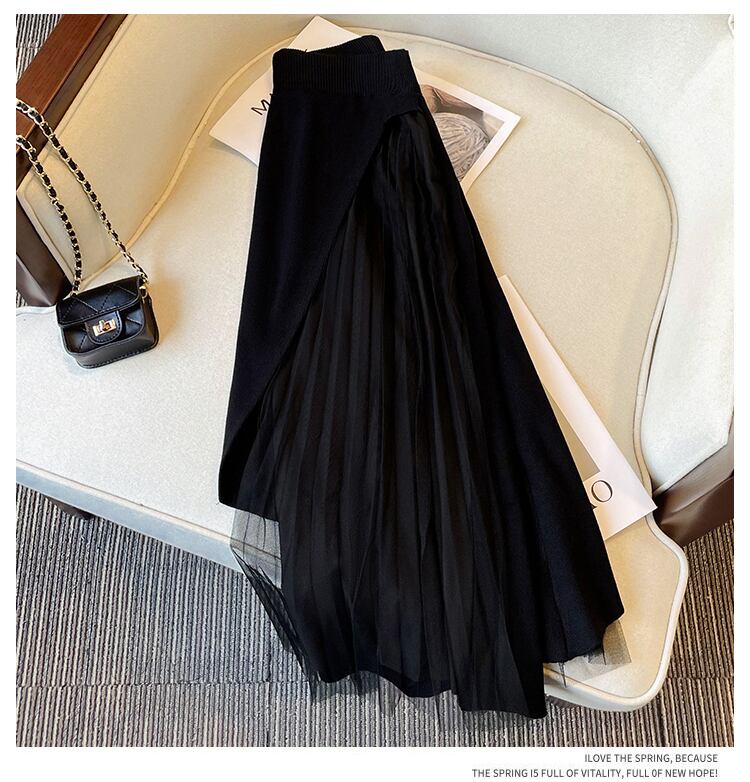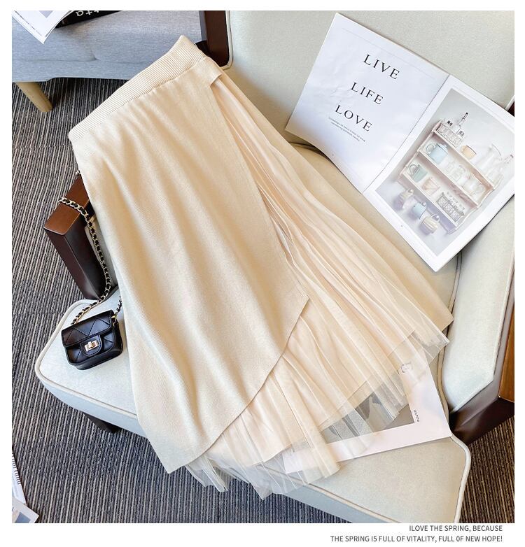 大きいサイズの婦人服 2023 トレンディな女性の春の新しい太った姉妹のファッショナブルなデザインのセンスのオールマッチの年齢を減らす気質の無地のスカート 大きめサイズ スプリング 春物 ソリッドカラー 888412687731660