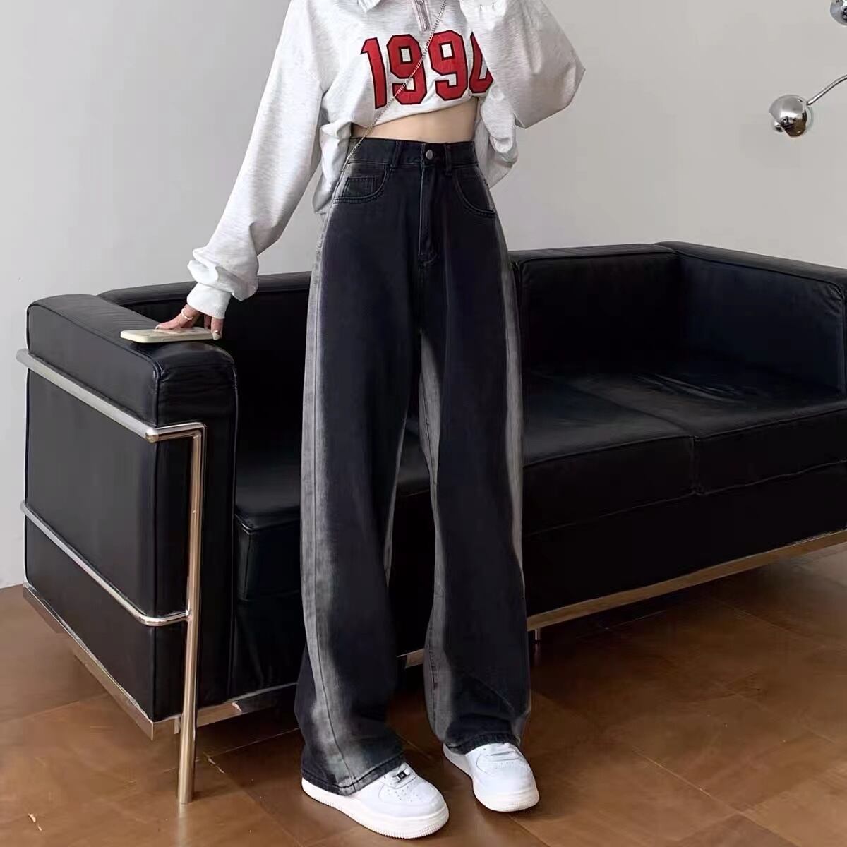 プラスサイズの婦人服 2023 ファットシスター春の新グラデーションストレートジーンズハイウエストルーズスリムワイドレッグパンツ女性 ハイウェスト 大きめサイズ スプリング 春物 ワイドパンツ 8884173223079775