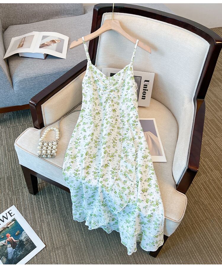 プラスサイズの婦人服 2023 春服脂肪姉妹新しいスーツ気質シフォン サスペンダー花柄ドレス 2 点セット 大きめサイズ スプリング 春物 8884163277616418