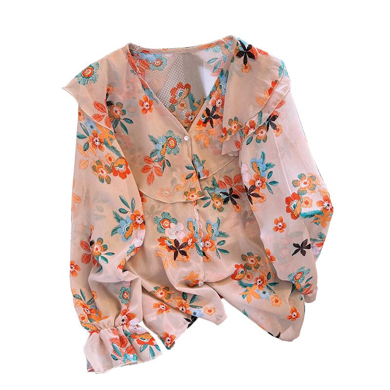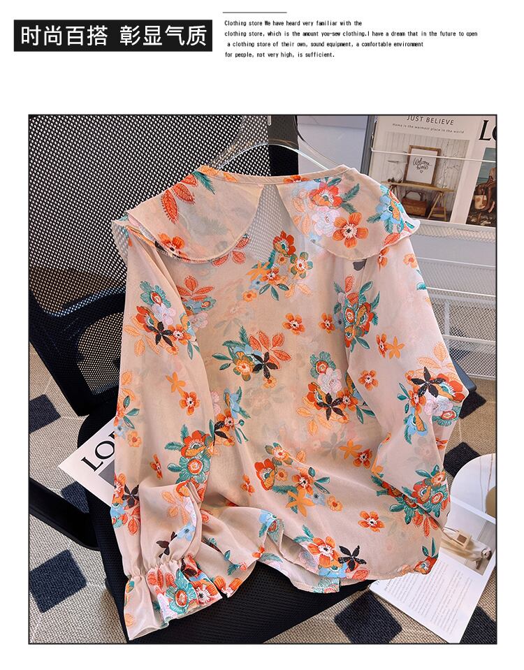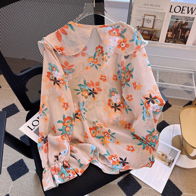 大きいサイズの婦人服 2023 春服脂肪姉妹新しい人形の襟シャツ緩い痩身シフォンシャツ花柄シャツ 大きめサイズ スプリング 春物 8884180553784305