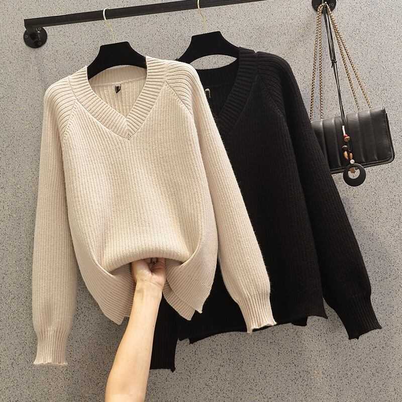 プラスサイズの婦人服 2023 ファットシスター春の新 V ネック無地厚い底入れニットセータートップ女性 大きめサイズ スプリング 春物 Vネック ソリッドカラー 888418478743151