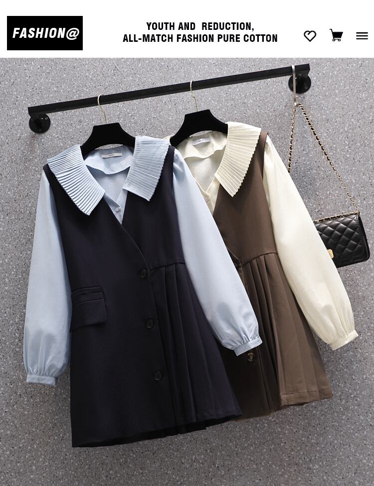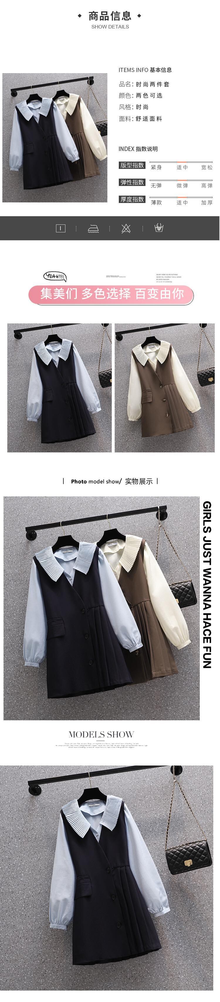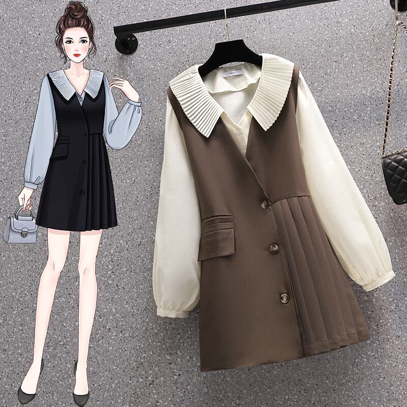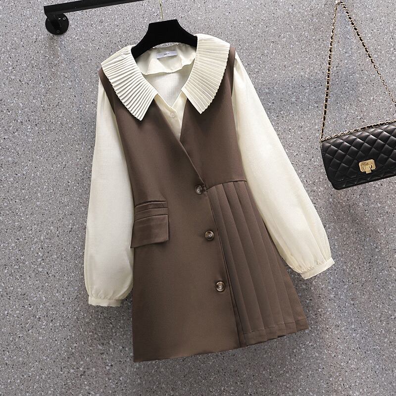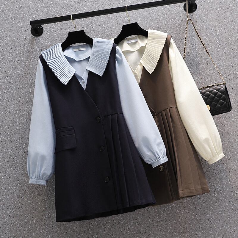 プラスサイズの婦人服 2023 脂肪姉妹春新 eign スタイル痩身ベストスカート長袖シャツツーピーススーツ ロング 大きめサイズ スプリング 春物 8884122999204653