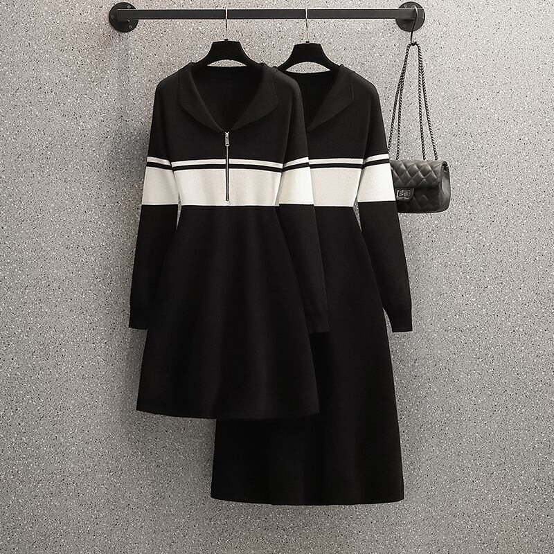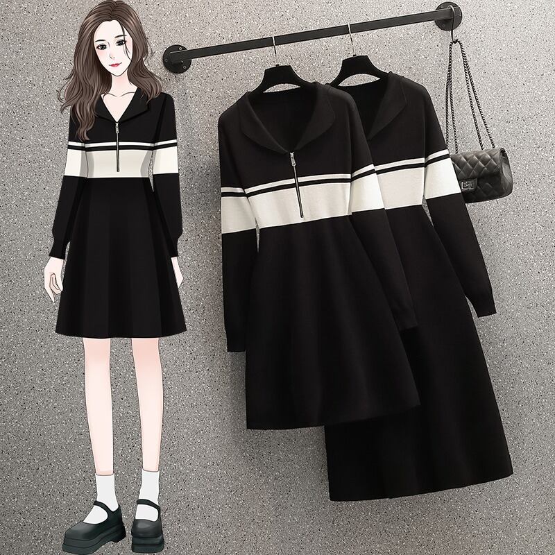 プラスサイズの婦人服 2023 トレンディな女性の春の新しいファットシスターファッションオールマッチスリムステッチジッパーウエストドレス 大きめサイズ スプリング 春物 8884117146030164