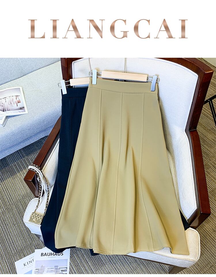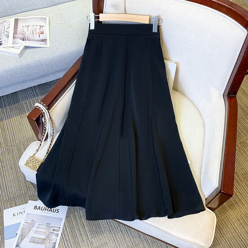 プラスサイズの婦人服 2023 脂肪姉妹春の新ミッドレングスハイウエスト A ラインプリーツロングスカートウールのスカートの女性 ハイウェスト 大きめサイズ スプリング 春物 Aライン 8884180022483353