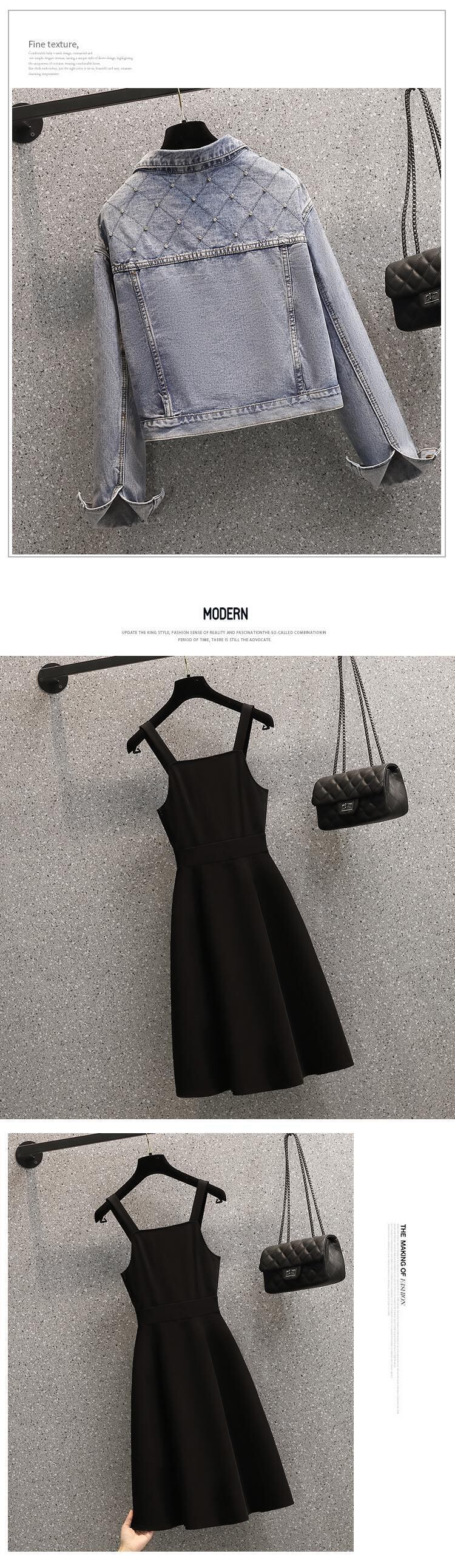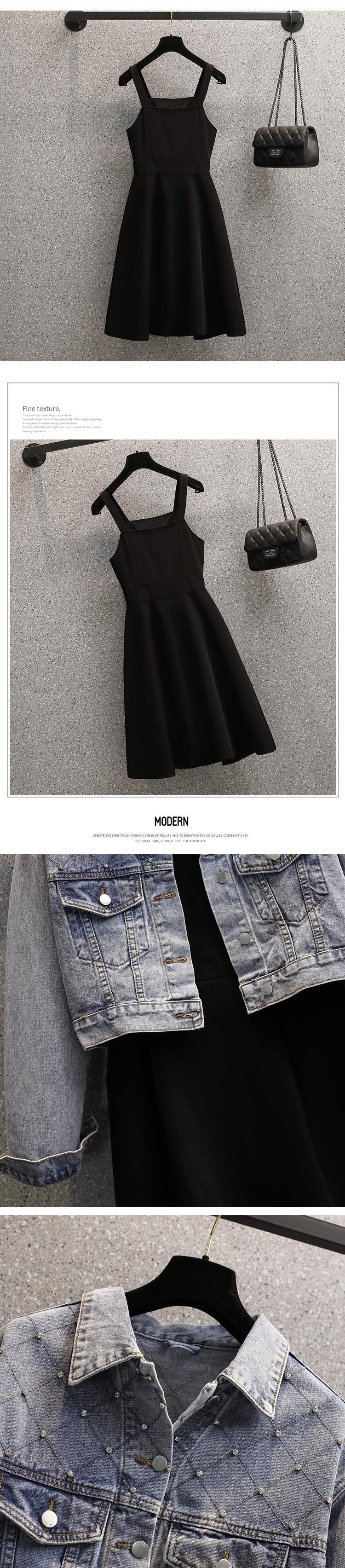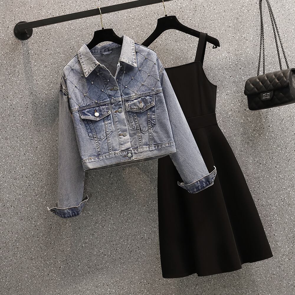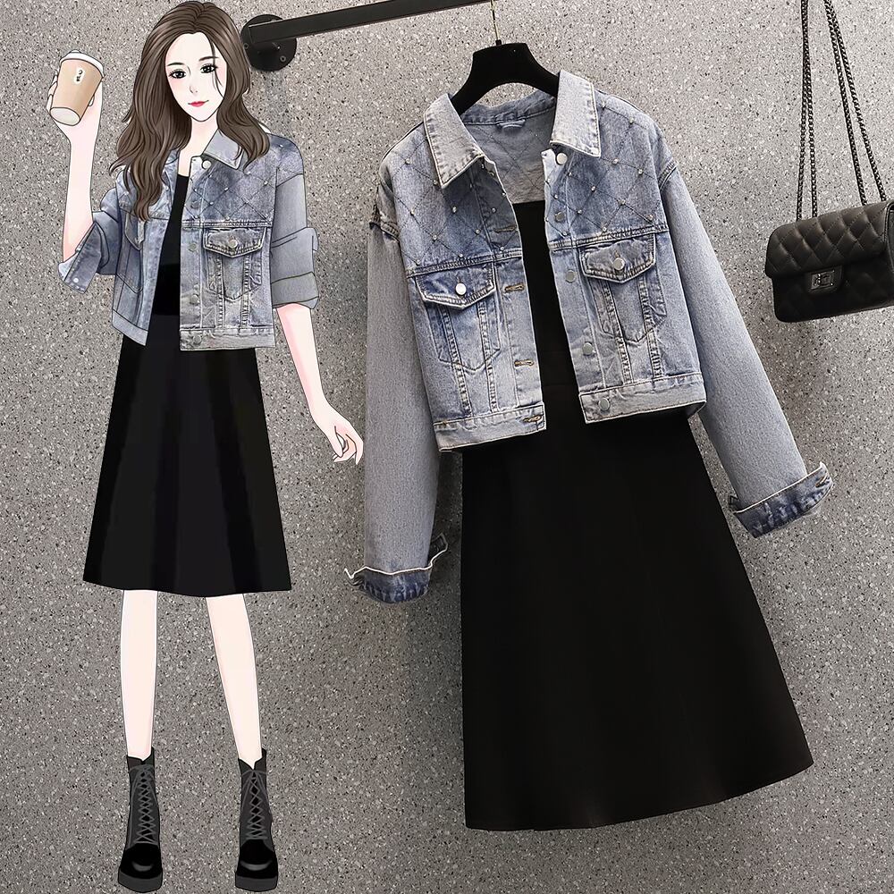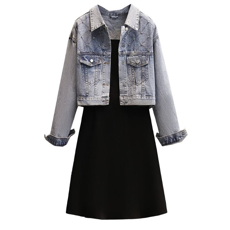 プラスサイズの婦人服 2023 春の新しいファットシスターデザインセンスデニムジャケットウエストストラップドレス 2 点セット 大きめサイズ スプリング 春物 8884182424137689