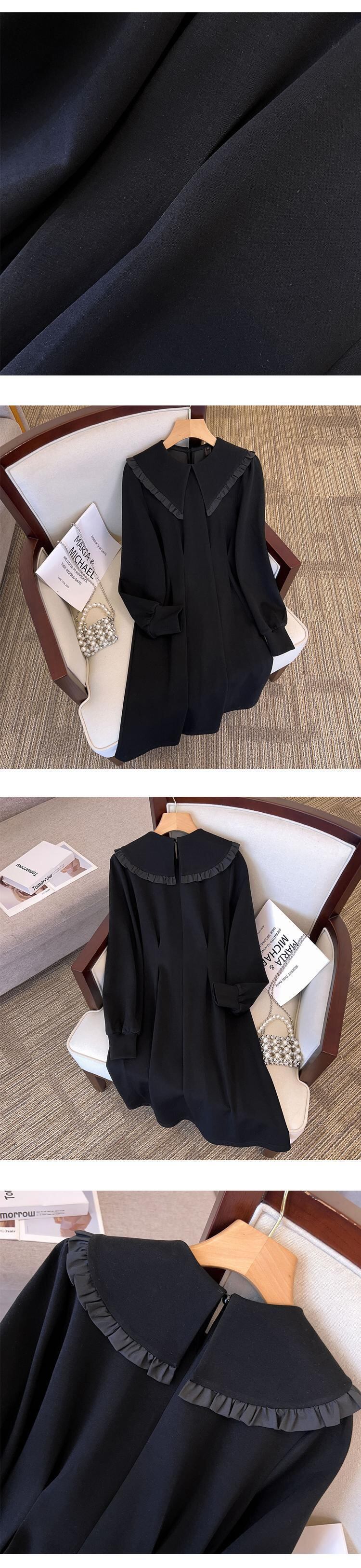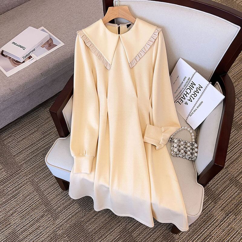 プラスサイズの婦人服 2023 トレンディな女性の春の新しいファットシスタールーズウッド耳人形の襟年齢を減らす長袖ドレス ロング 大きめサイズ スプリング 春物 8884189573601813