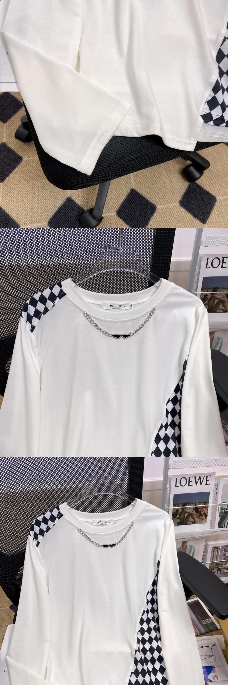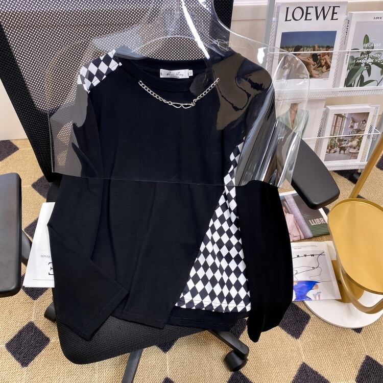 プラスサイズの婦人服 2023 ファットシスター春の新オールマッチルーズスリム長袖 Tシャツスプライシングデザイントップス ロング 大きめサイズ スプリング 春物 8884149585212849