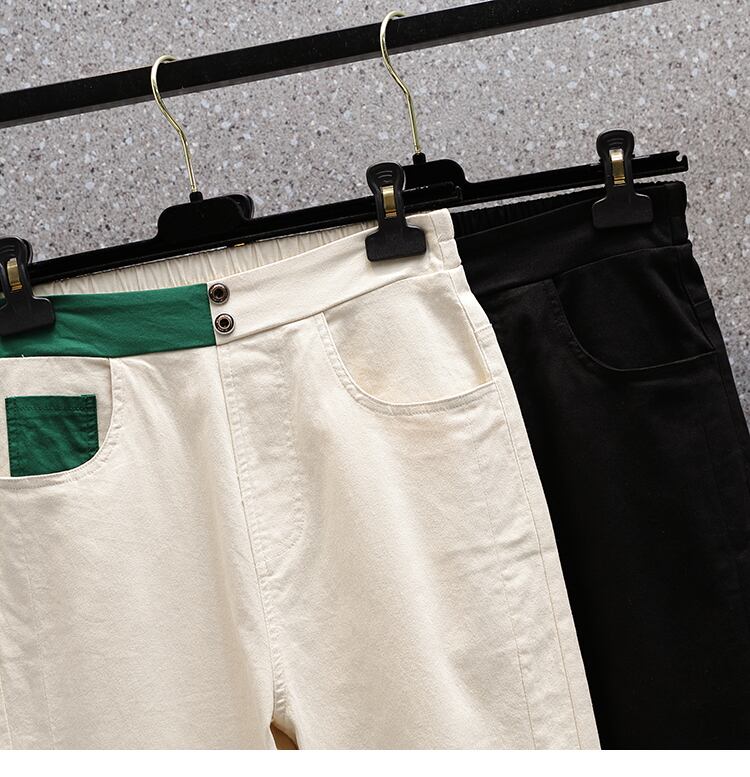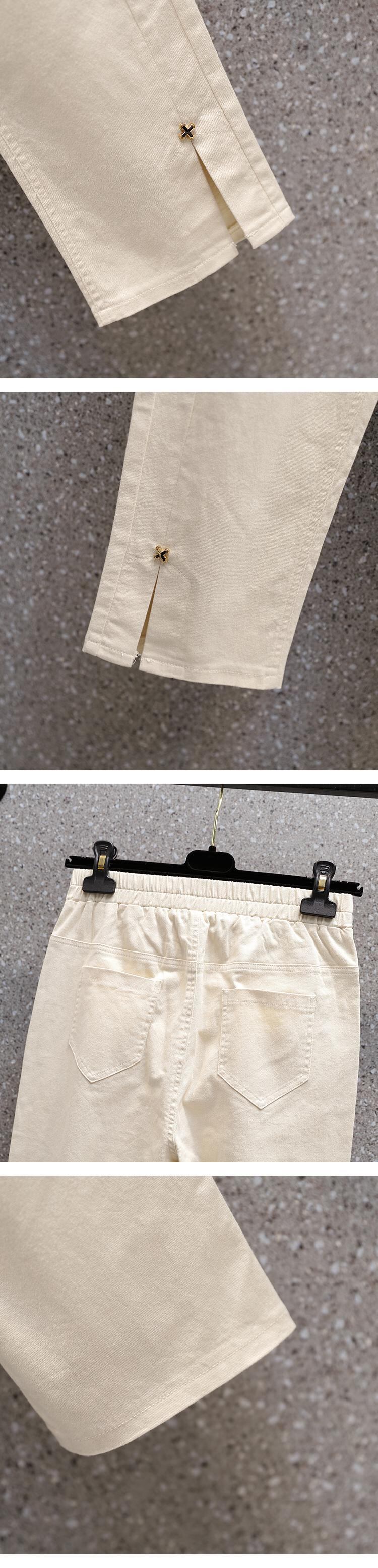 プラスサイズの婦人服 2023 春服新ファットシスターカジュアル弾性オールマッチファッションスリットシックなストレートレッグパンツ女性 エラスティック 伸縮 大きめサイズ スプリング 春物 8884148415245139