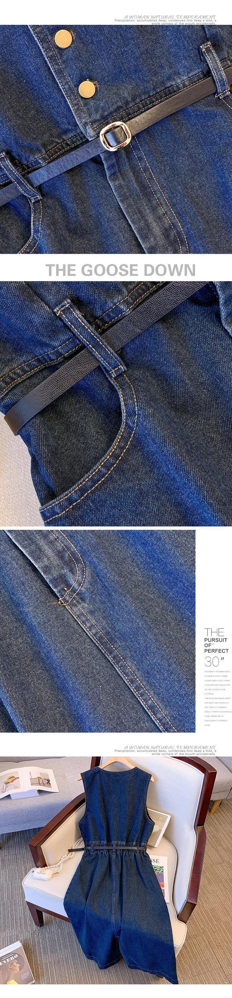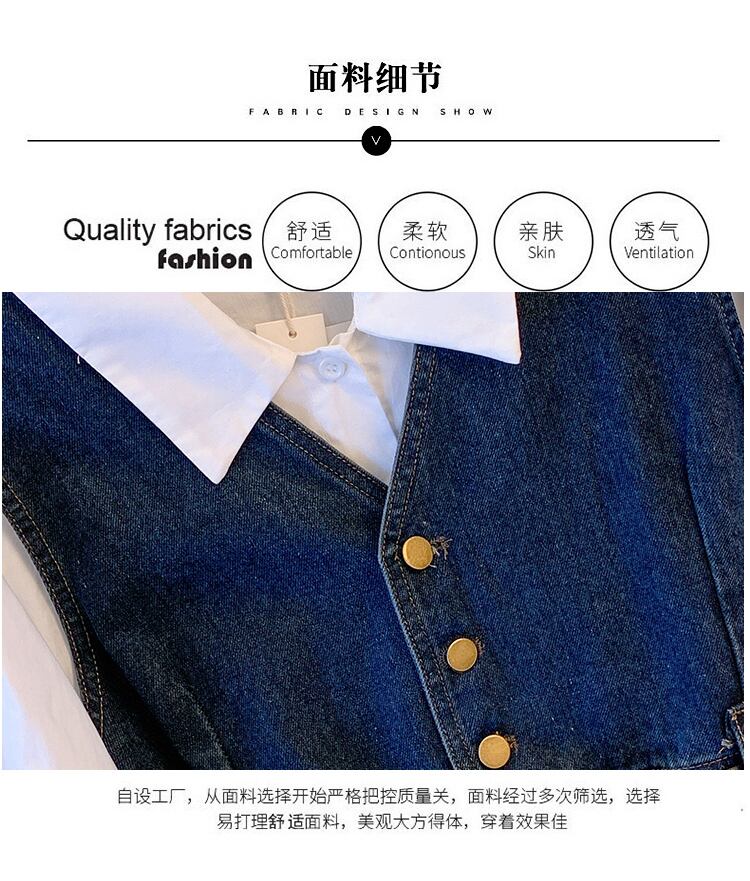 プラスサイズの婦人服 2023 春の新しいファットシスターファッションデニムサスペンダースカートショート無地シャツ 2 点セット 大きめサイズ スプリング 春物 ソリッドカラー 888417947802990