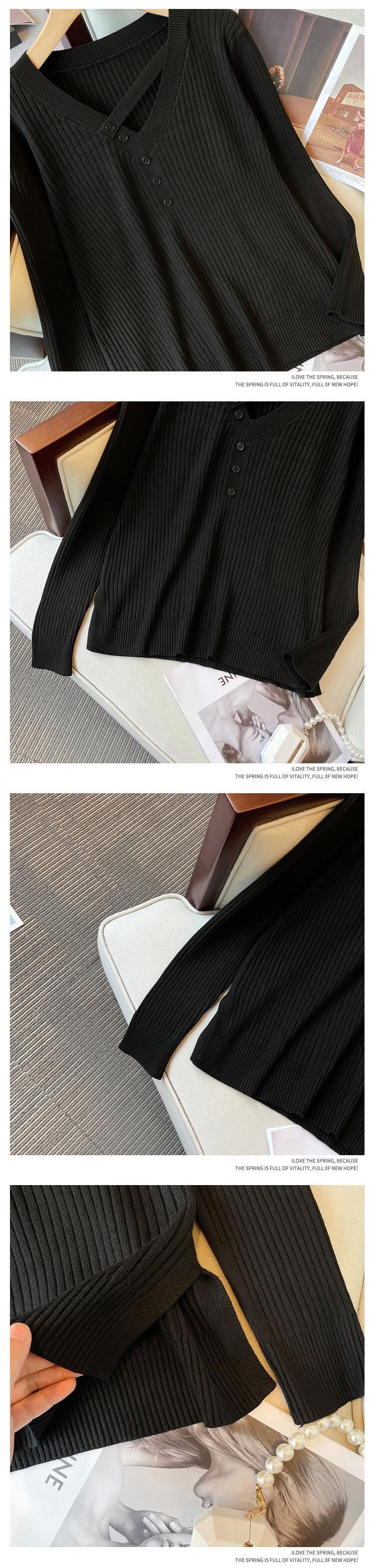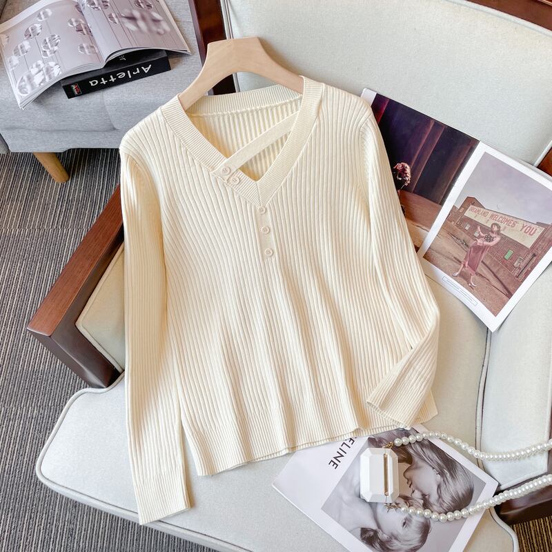 プラスサイズの婦人服2023春の新しいスタイルの太った姉妹は、薄い無地のシックなスタイルのファッショナブルなオールマッチニット底入れシャツに見えます 大きめサイズ スプリング 春物 ソリッドカラー 8884119450255375