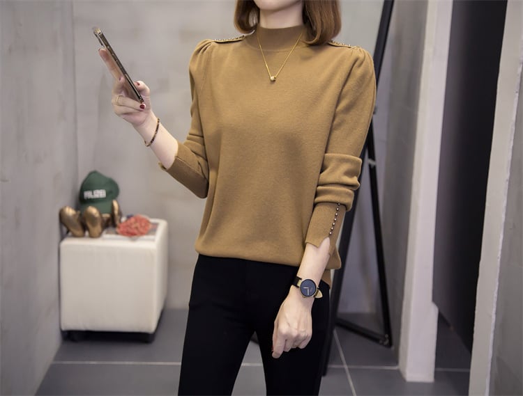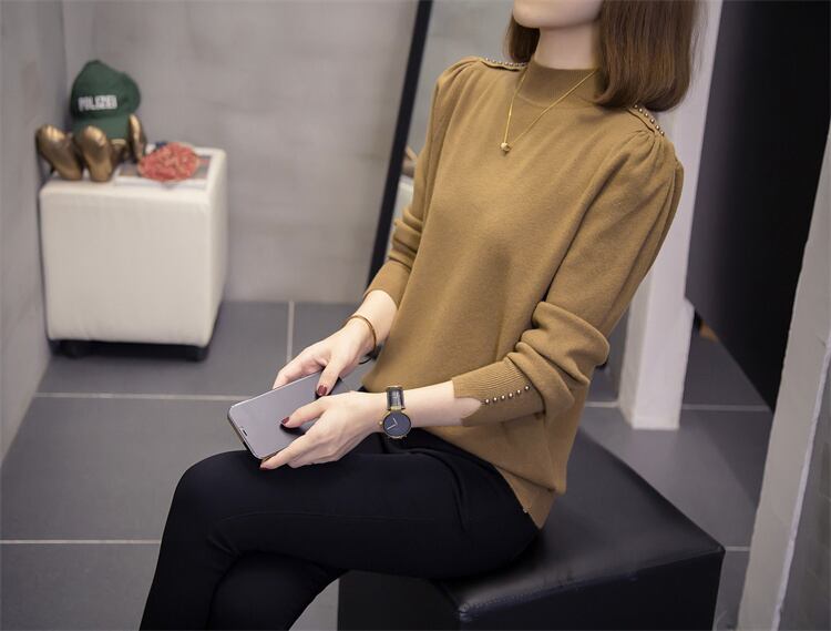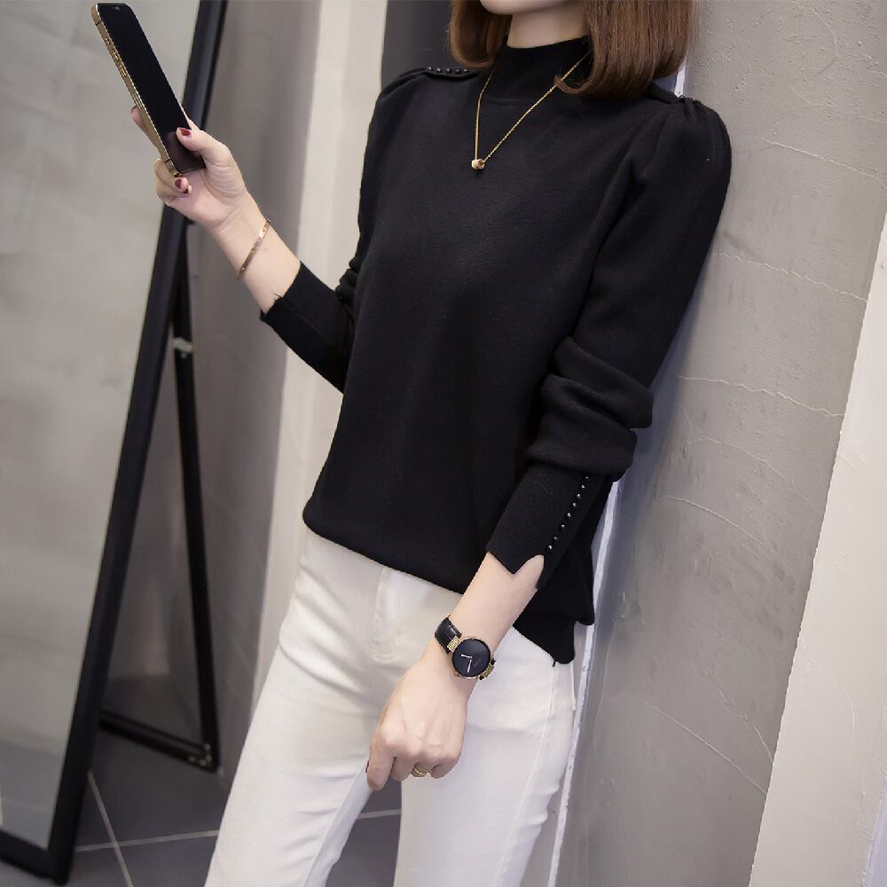 プラスサイズの婦人服 2023 春の新しいスタイルの太った姉妹ハーフハイカラー無地カバーリング肉カジュアル気質底入れニットセーター女性 大きめサイズ スプリング 春物 ソリッドカラー 8884168907477945