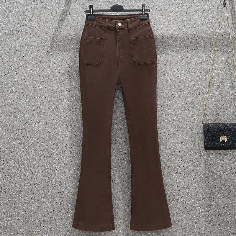 プラスサイズの婦人服 2023 春の新しいカジュアルなズボン太った姉妹、スリム、ハイウエスト、伸縮性、わずかにブーツカット パンツの女性 エラスティック 大きめサイズ スプリング 春物 8884166282562869